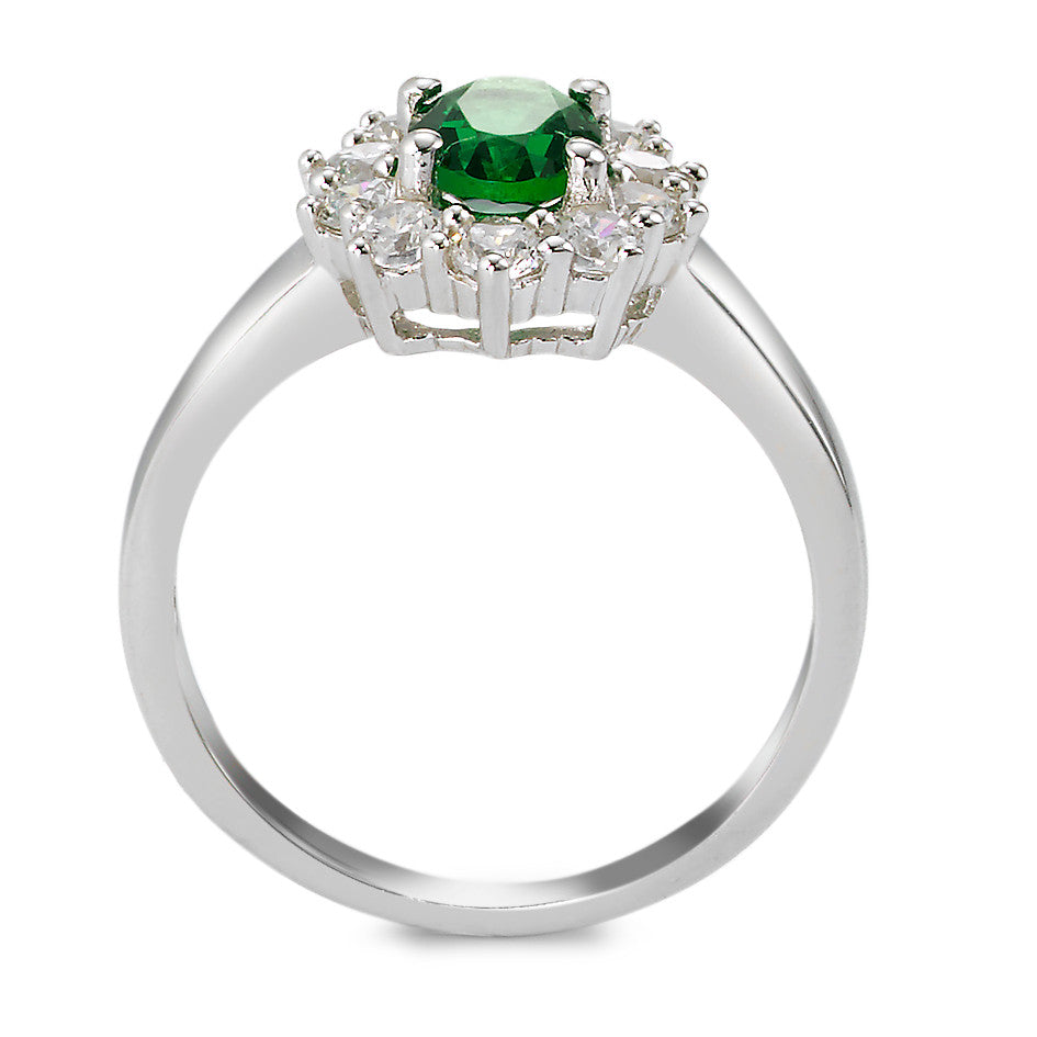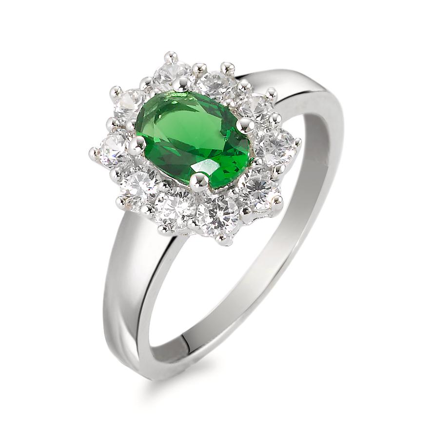 Eleganter Damenring aus hochwertigem Silber, verziert mit einem strahlenden grünen Zirkonia in der Mitte und funkelnden weißen Zirkonia-Steinen rundherum. Ein zeitloses Schmuckstück, das jedem Outfit ein edles und glamouröses Finish verleiht. Perfekt für besondere Anlässe.