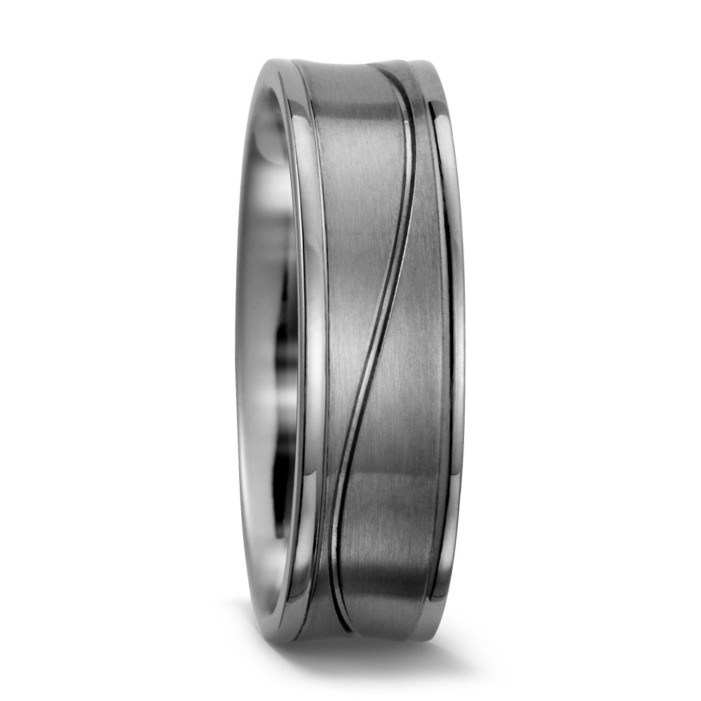 Moderner Herren Fingerring aus hochwertigem Titan. Der leichte, robuste Ring besticht durch seine matte Oberfläche mit elegant geschwungenen, polierten Linien. Perfekt für den täglichen Gebrauch – zeitloses Design trifft auf angenehmen Tragekomfort.
