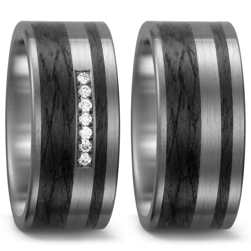 Eleganter Damen-Fingerring aus robustem Titan, veredelt mit edlem Carbon-Inlay und sieben funkelnden Diamanten. Das moderne Design vereint Präzision und Stil, ideal für anspruchsvolle Trägerinnen, die Wert auf Qualität und außergewöhnliche Materialien legen. Ein besonderer Schmuckstück-Klassiker.
