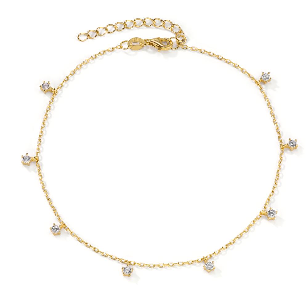 Elegantes Damen Fußkettchen aus feinvergoldetem Silber, verziert mit funkelnden Zirkonia-Steinen. Das leichte Design ist perfekt für den Sommer und lässt sich vielseitig kombinieren. Verstellbare Länge sorgt für optimalen Tragekomfort und perfekten Sitz. Ein zeitlos schönes Accessoire!