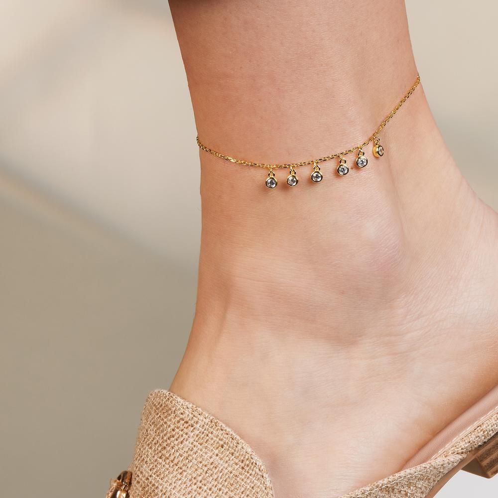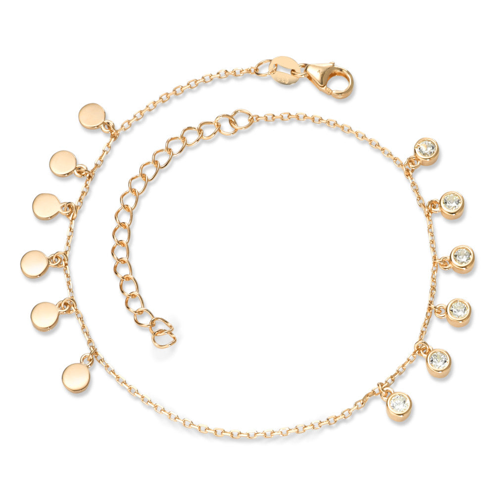 Fusskettchen Silber Zirkonia vergoldet 24-28 cm verstellbar