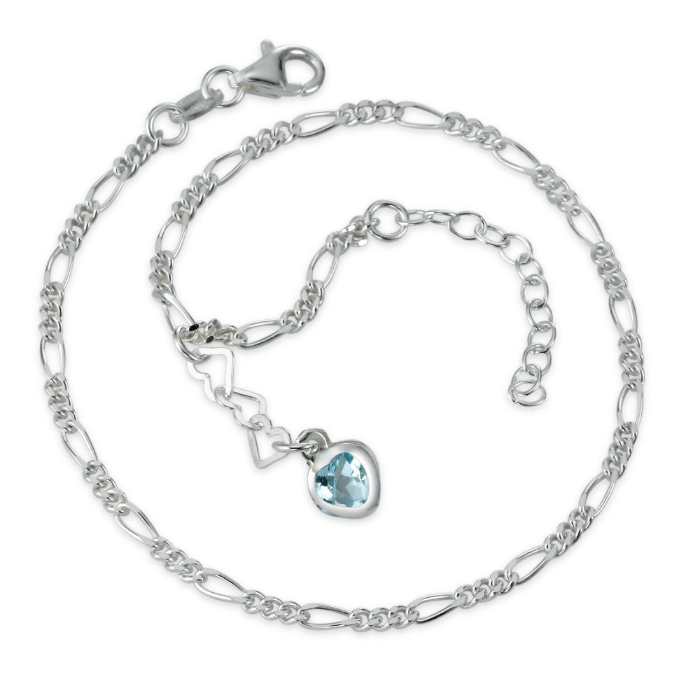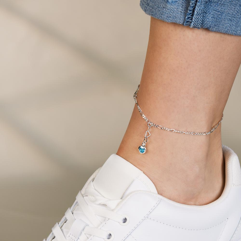 Elegantes Damen-Fußkettchen aus hochwertigem Silber mit zarten Gliedern. Das Highlight ist ein bezaubernder Herz-Anhänger, besetzt mit funkelndem Zirkonia in Hellblau. Verstellbare Länge für perfekten Sitz – ein edles Accessoire für jeden Sommertag und besondere Anlässe.