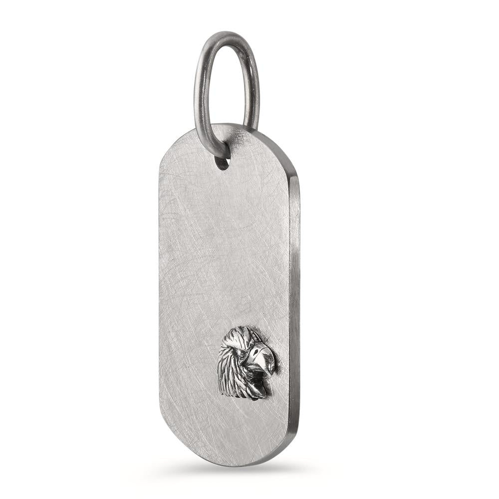 Moderner Herren Gravuranhänger aus hochwertigem Edelstahl in silberner Optik. Veredelt mit einem detailreich gestalteten Adlerkopf als kraftvolles Symbol. Robustes, kratzfestes Design, perfekt für den maskulinen Stil. Ideal als Geschenk oder persönliches Accessoire.