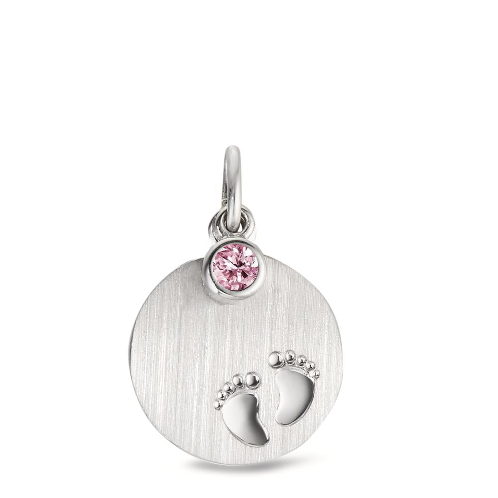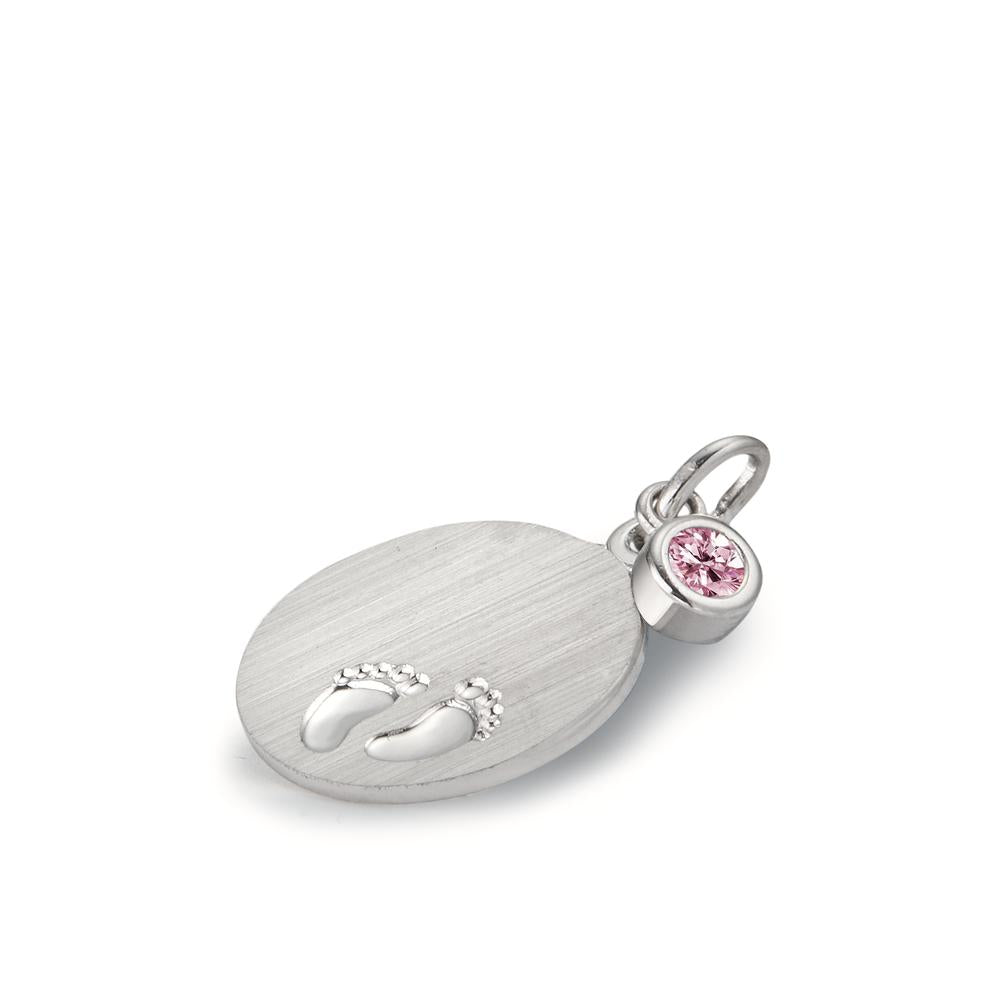 Gravuranhänger Silber Zirkonia rosa rhodiniert Füsse Ø12 mm