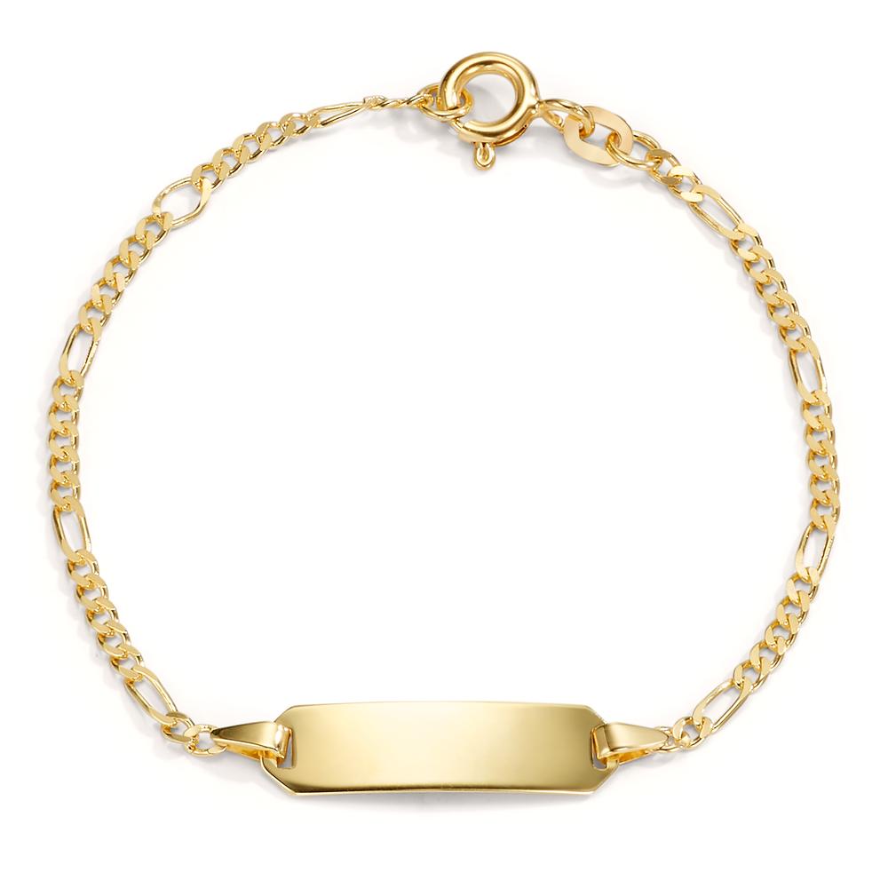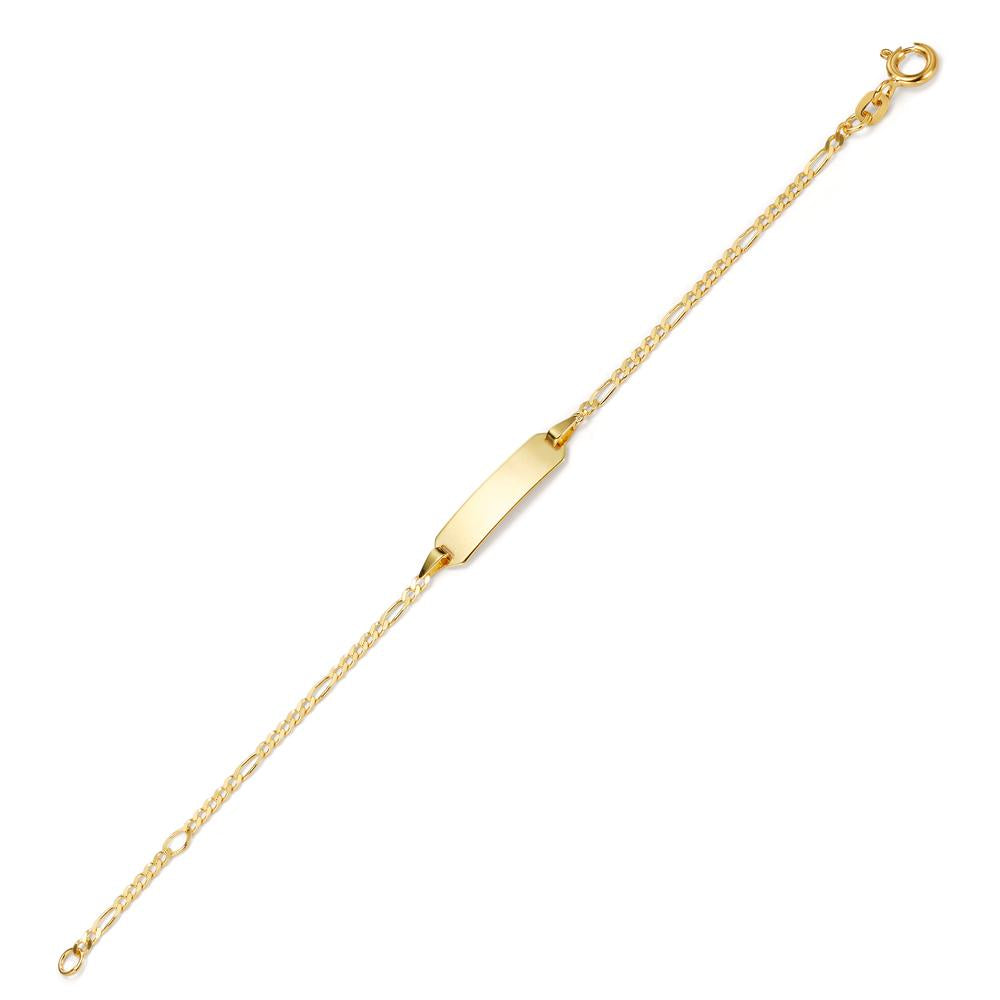 Zartes Baby-Gravurarmband aus hochwertigem 585er Gelbgold. Perfekt als individuelles Geschenk, personalisierbar mit Name oder Datum. Feine Figaro-Kette und sichere Federring-Verschluss garantieren Komfort und Haltbarkeit für die Kleinsten. Ein zeitloser Schatz fürs Leben.