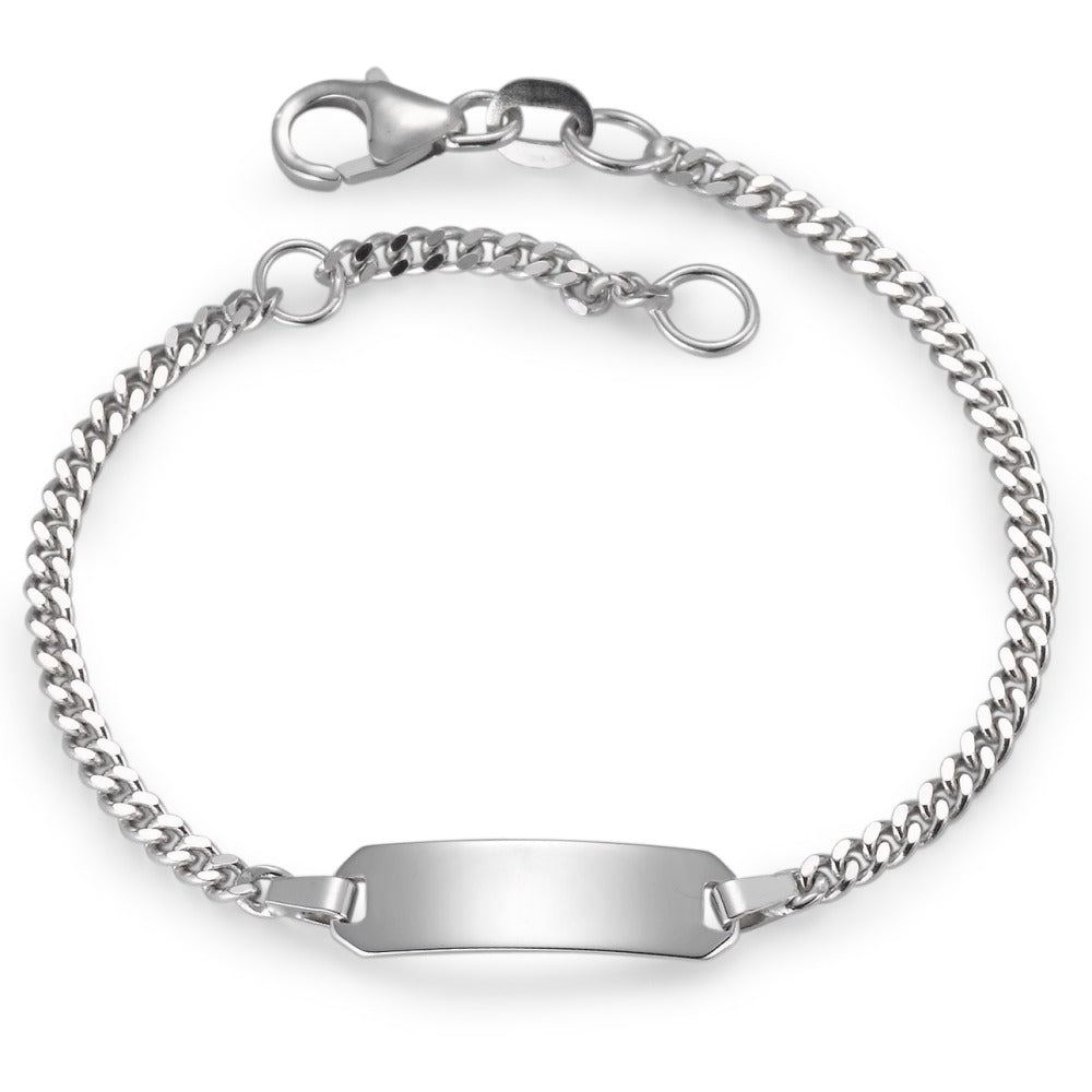 Zartes Baby-Gravurarmband aus 750er Weißgold, perfekt zum Personalisieren mit Namen oder besonderem Datum. Die feine Panzerkette und das glänzende Namensschild machen dieses Schmuckstück zu einem stilvollen und liebevollen Geschenk zur Geburt oder Taufe.