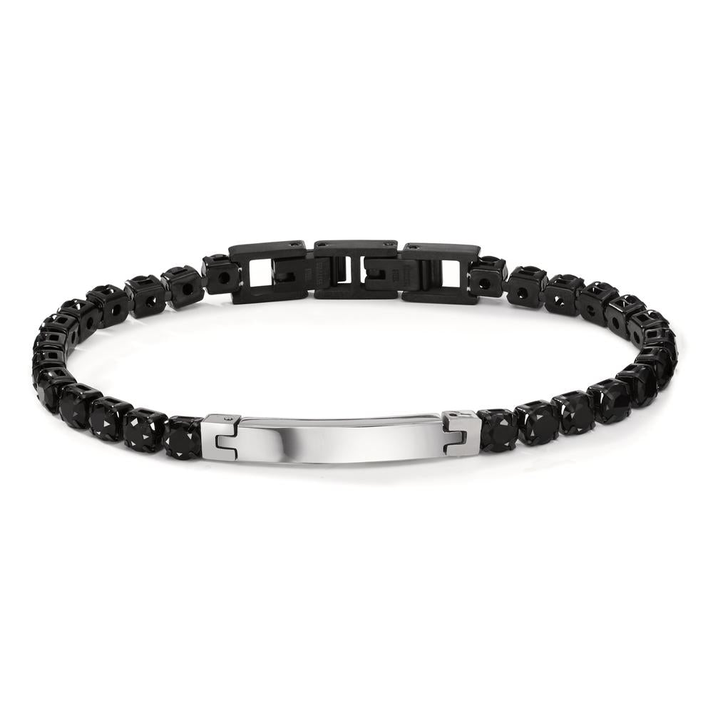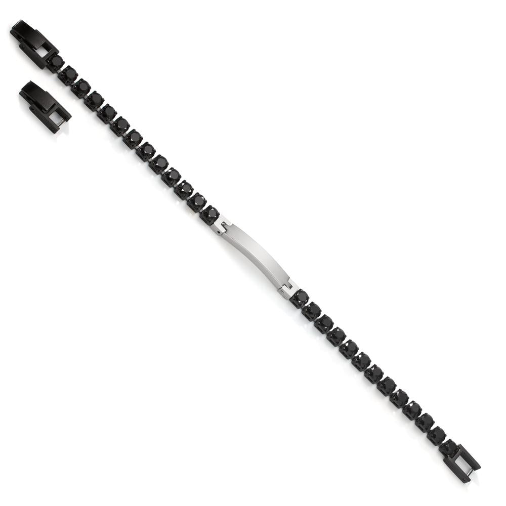 Gravurarmband Edelstahl Zirkonia schwarz 20-21 cm verstellbar