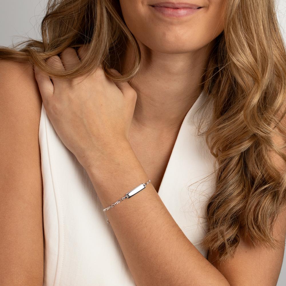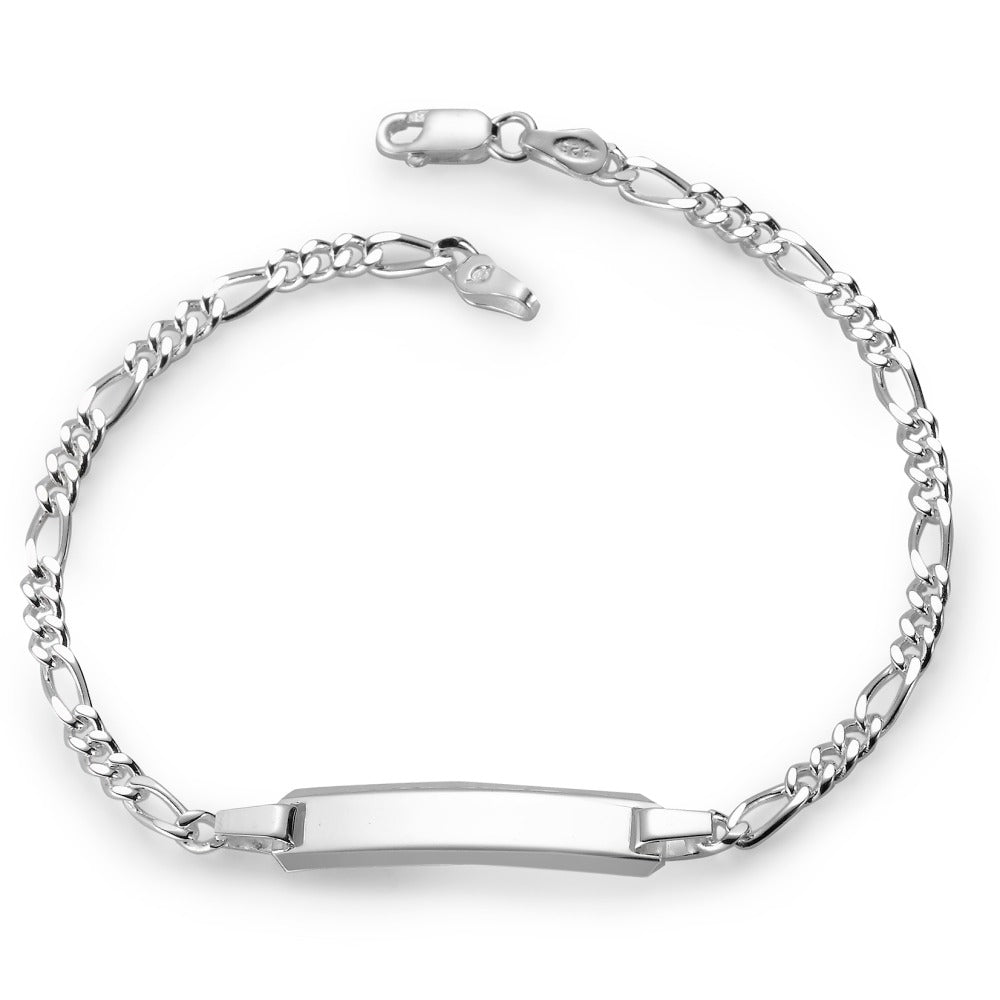 Elegantes Gravurarmband aus hochwertigem Silber. Die glatte Oberfläche bietet Platz für persönliche Gravuren, ideal als individuelles Geschenk. Das filigrane Figarokettendesign kombiniert Stil und Komfort für den täglichen Gebrauch. Ein zeitloses Schmuckstück für jeden Anlass.
