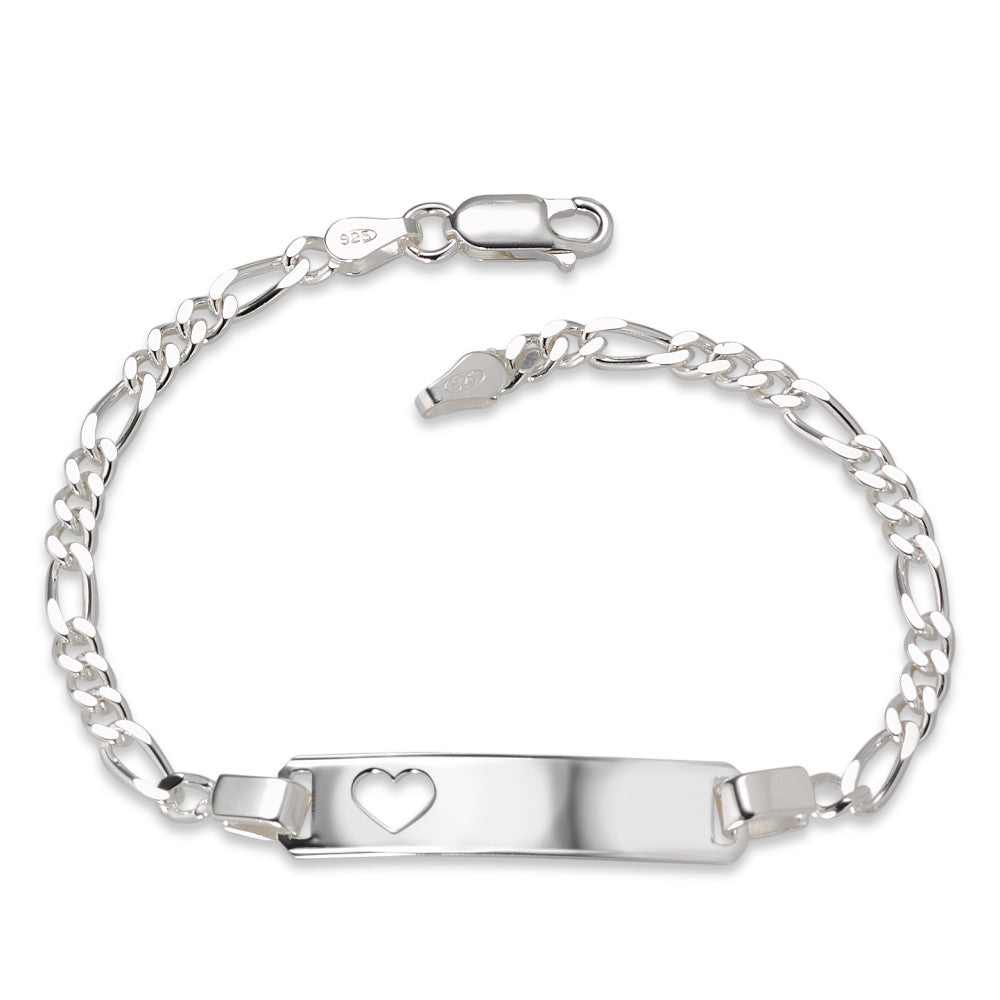 Wunderschönes Baby-Gravurarmband aus hochwertigem Sterlingsilber. Das zarte Armband mit Herz-Aussparung lässt sich individuell gravieren – ein besonderes und persönliches Geschenk zur Geburt oder Taufe. Sicherer Karabinerverschluss für kleinen Kinderarm gefertigt.