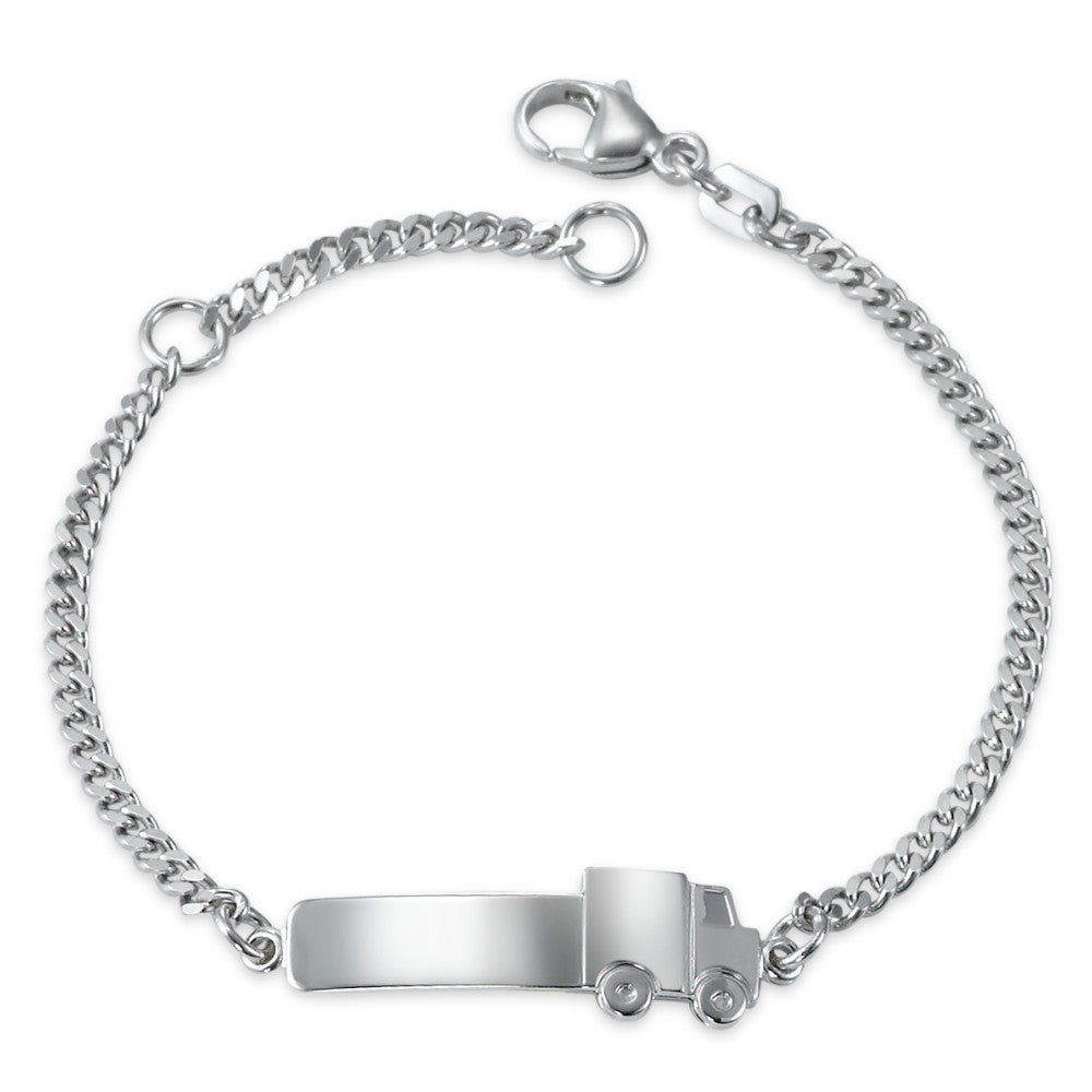 Zauberhaftes Kinder Gravurarmband aus hochwertigem Silber mit niedlichem LKW-Motiv. Die glänzende Platte bietet Platz für eine persönliche Gravur, die diesen Schmuckstück zu einem einzigartigen Erinnerungsstück macht. Perfekt als Geschenk für kleine Abenteurer.