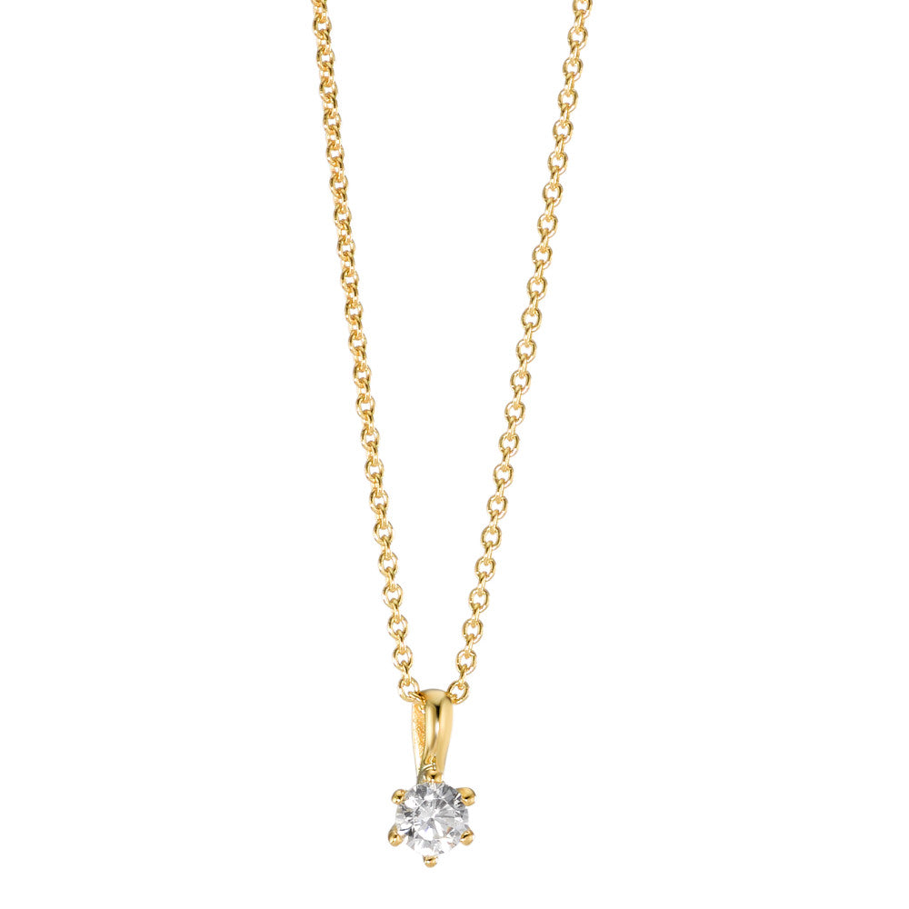 Elegante Damenhalskette aus 375 Gelbgold mit funkelndem Zirkonia-Anhänger. Ein zeitloser Klassiker, der sich perfekt für jeden Anlass eignet. Das hochwertige Material sorgt für langanhaltenden Glanz und eine edle Optik. Ein schönes Geschenk oder täglicher Begleiter.