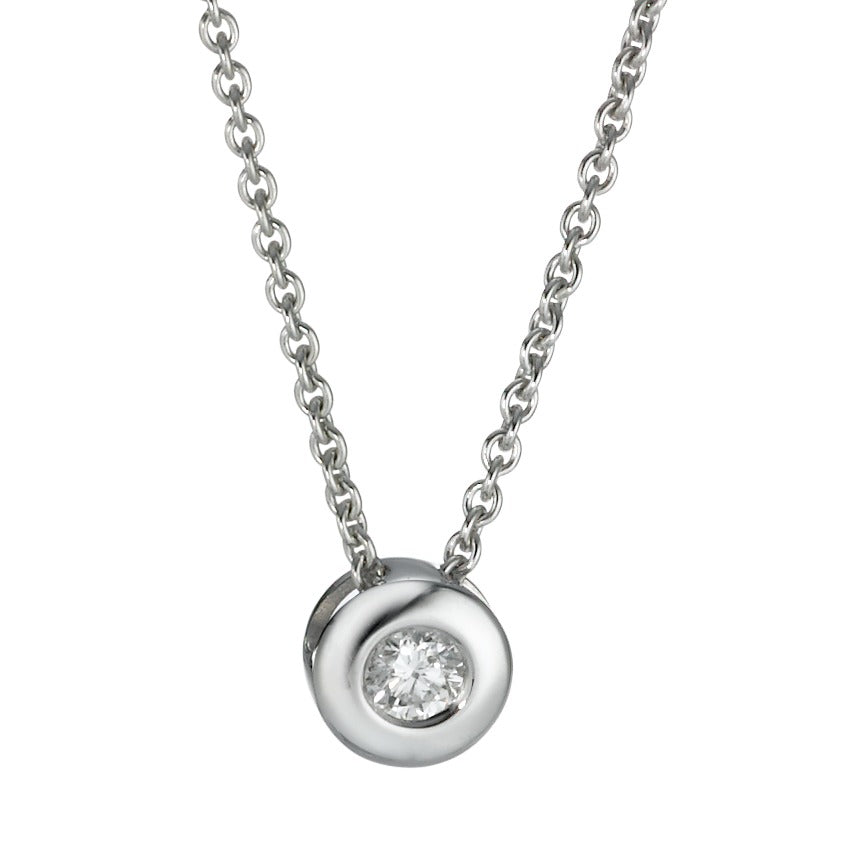 Halskette mit Anhänger 750/18 K Weissgold Diamant 0.08 ct, w-si 42-45 cm verstellbar Ø5.5 mm