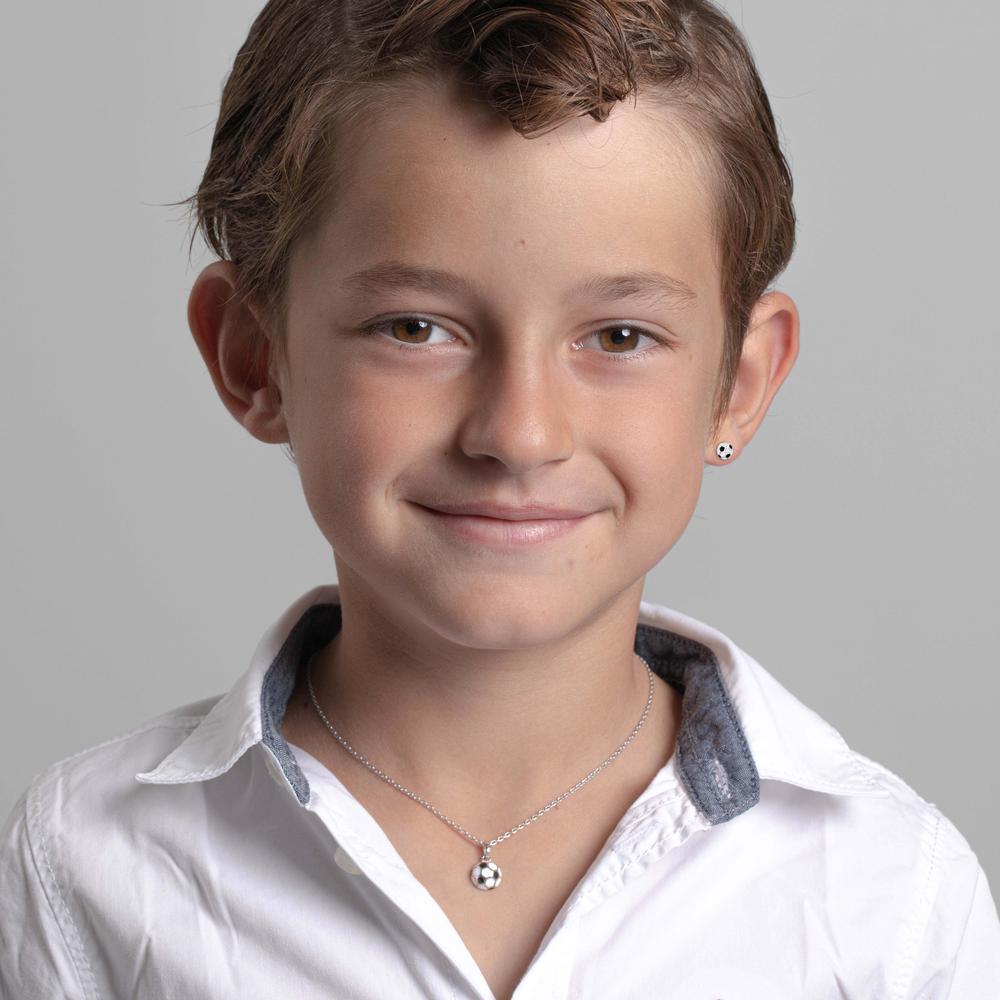 Diese Jungen Halskette aus hochwertigem Silber begeistert mit einem detailreichen Fußball-Anhänger. Ein perfektes Geschenk für kleine Fußballfans, das sportlichen Style und zeitlosen Schmuck vereint. Robuste Verarbeitung sorgt für langanhaltenden Tragekomfort.