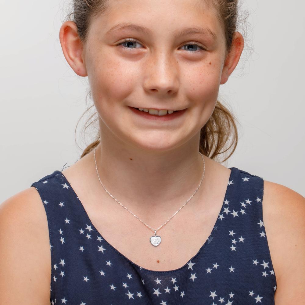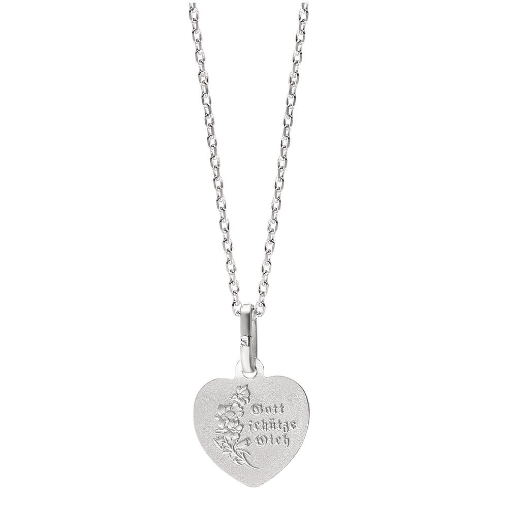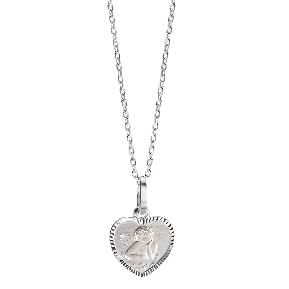 Zarte Baby Halskette aus hochwertigem Silber mit Anhänger in Herzform, verziert mit einem Schutzengel-Motiv. Ideal als liebevolles Geschenk zur Taufe oder Geburt und ein symbolischer Begleiter voller Schutz und Geborgenheit für Ihr Baby. Elegant und zeitlos.