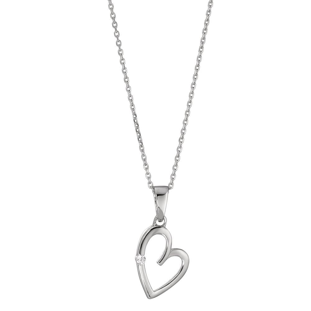 Halskette mit Anhänger Silber Zirkonia weiss rhodiniert Herz 40-42 cm verstellbar