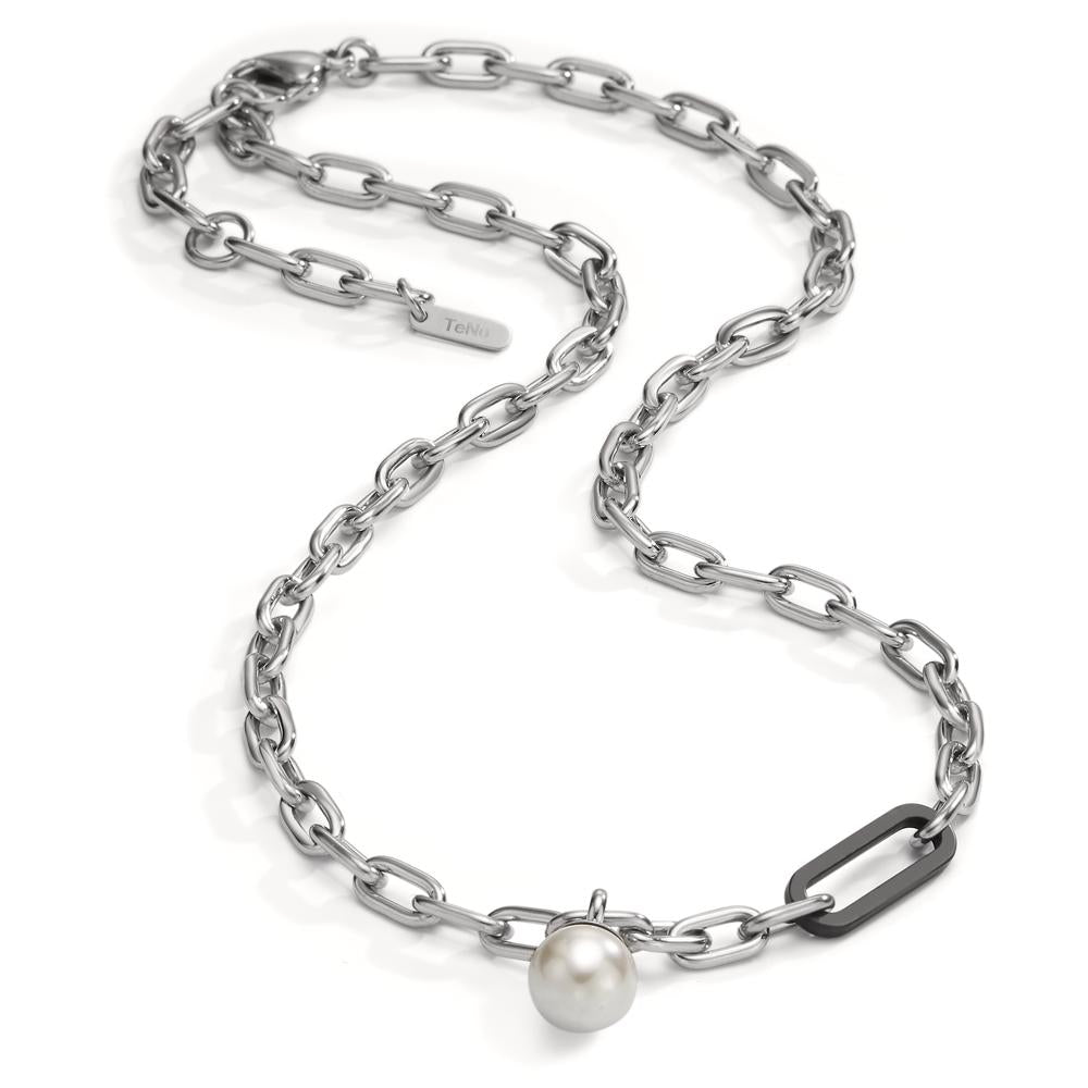 Halskette Soho Pearl Drop Silver aus Edelstahl mit Carbon und Muschelperle, 43-48 cm verstellbar