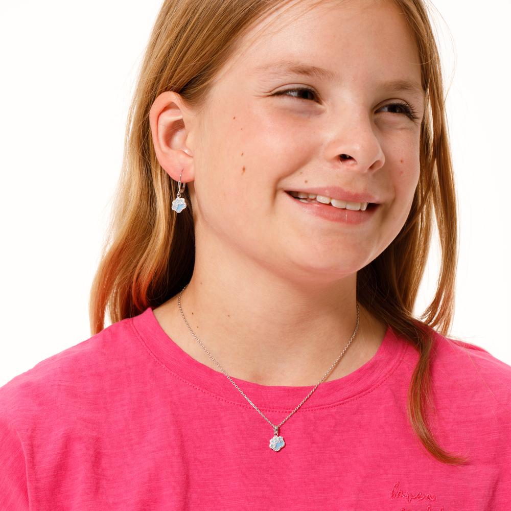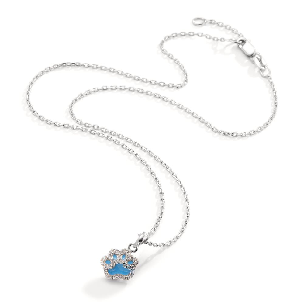 Zauberhafte Halskette für Mädchen aus hochwertigem Silber mit einem funkelnden Pfoten-Anhänger. Der Anhänger ist mit strahlenden Zirkonia-Steinen besetzt und bezaubert durch ein leuchtendes Blau. Perfektes Accessoire für kleine Tierliebhaberinnen.