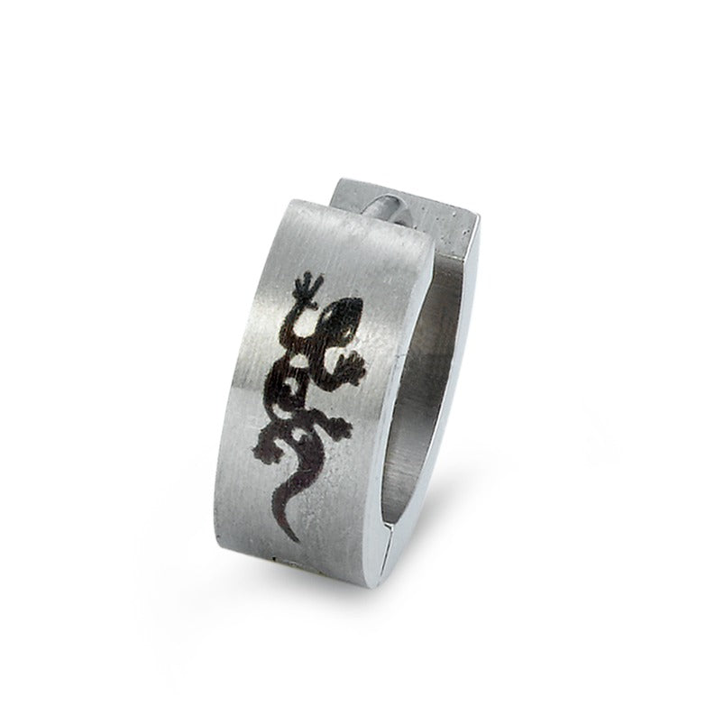 Stylische Herren-Klappcreole aus hochwertigem Edelstahl mit geprägtem Gecko-Motiv. Robust, zeitlos und angenehm zu tragen, verleiht dieses Accessoire deinem Look einen coolen Akzent. Perfekt für den Alltag oder besondere Gelegenheiten. In Einheitsgröße, leicht zu öffnen und zu schließen.