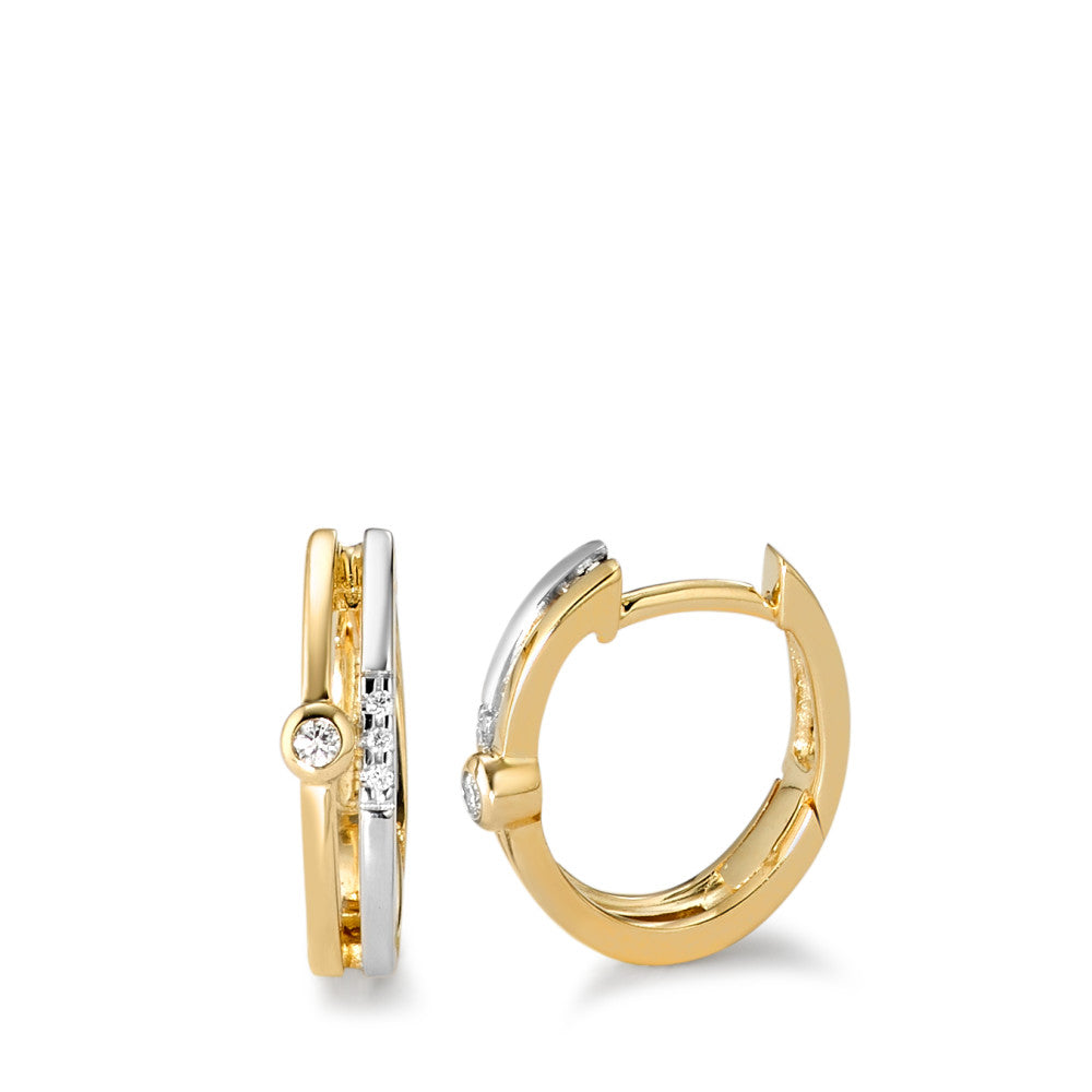 Klappcreolen 750/18 K Gelbgold, 750/18 K Weissgold Diamant weiss, 0.05 ct, 8 Steine, Brillantschliff, w-si