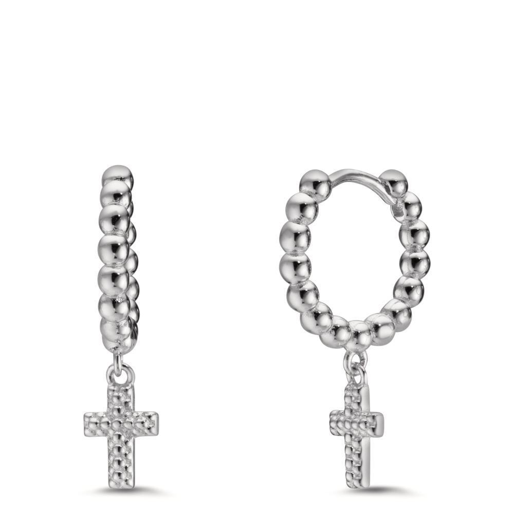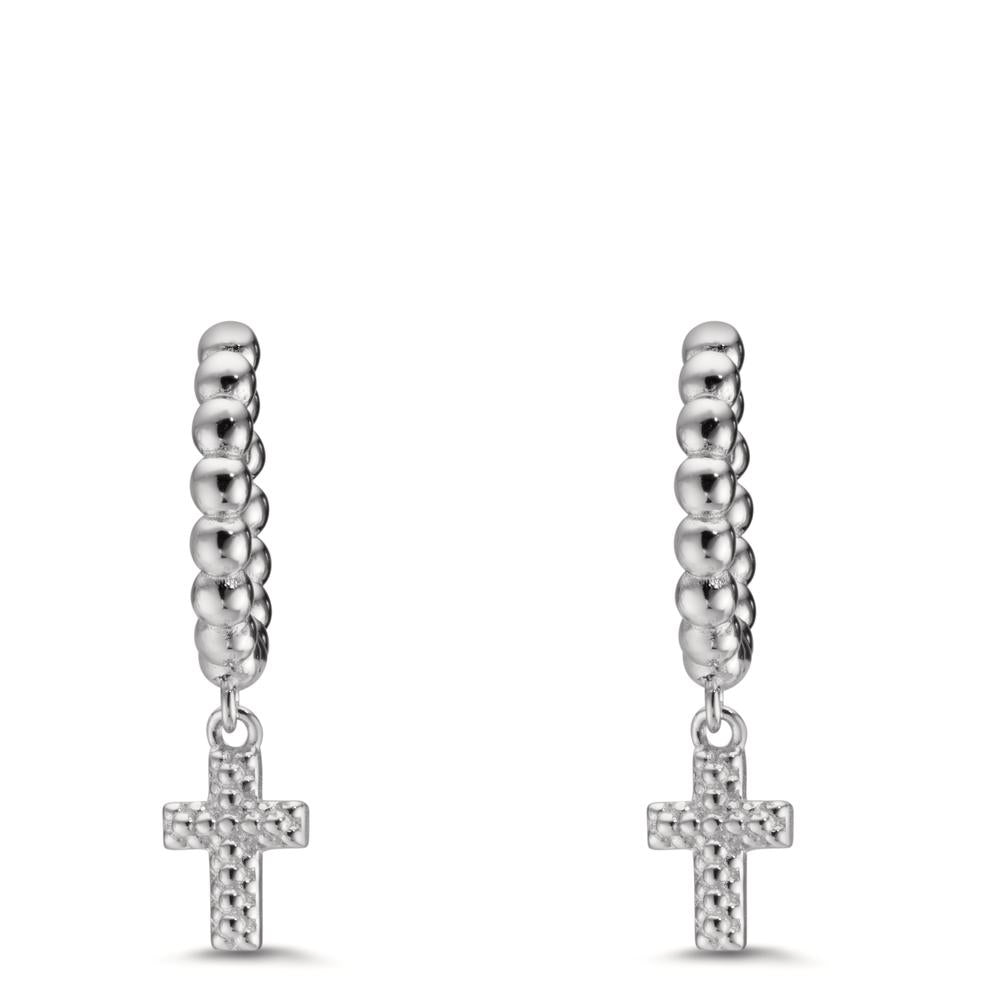Elegante Damen Klappcreolen aus hochwertigem Silber mit einer verspielten Perlenoptik. Abgerundet wird das Design durch einen feinen Kreuz-Anhänger, der zeitlose Spiritualität und Stil vereint. Leicht zu tragen und perfekt für jeden Anlass.