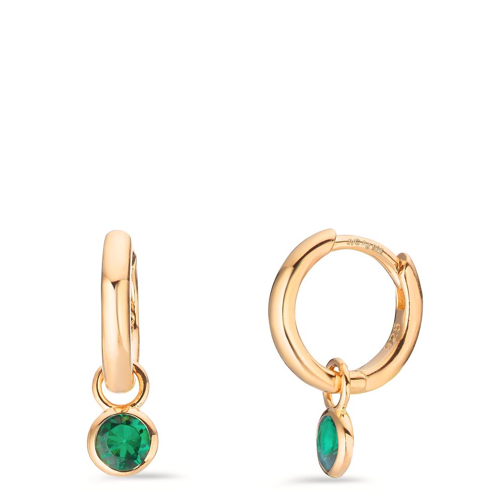Klappcreolen Silber Zirkonia grün, 2 Steine gelb vergoldet