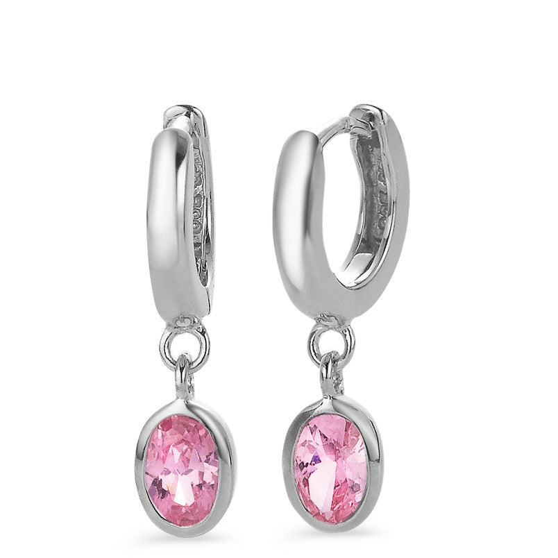 Klappcreolen Silber Zirkonia rosa, 2 Steine rhodiniert