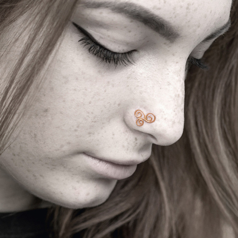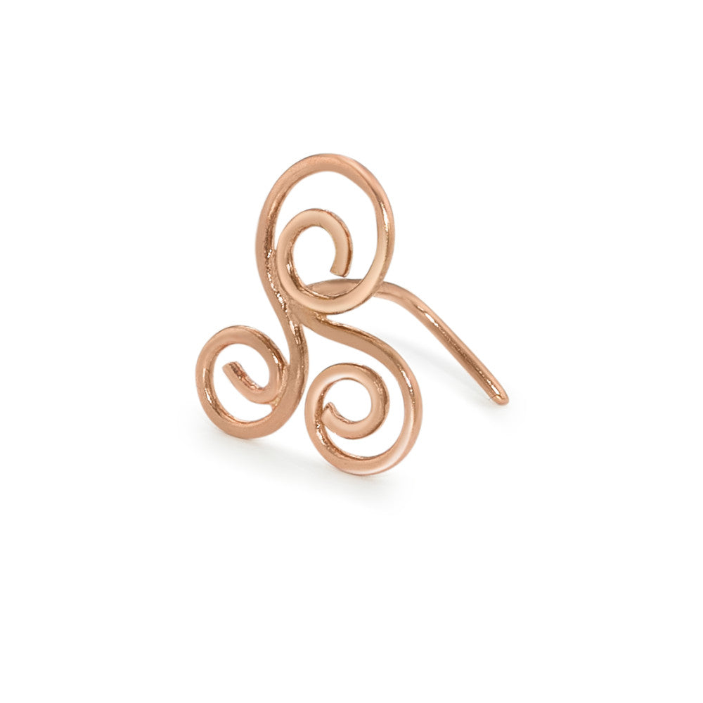 Eleganter Damen Nasenstecker aus hochwertigem 750er Rotgold. Das filigrane Design mit geschwungenen Spiralen verleiht jedem Look eine besondere Note. Perfekt für stilbewusste Frauen, die ein dezentes und zugleich auffälliges Accessoire suchen. Leicht zu tragen und langlebig.