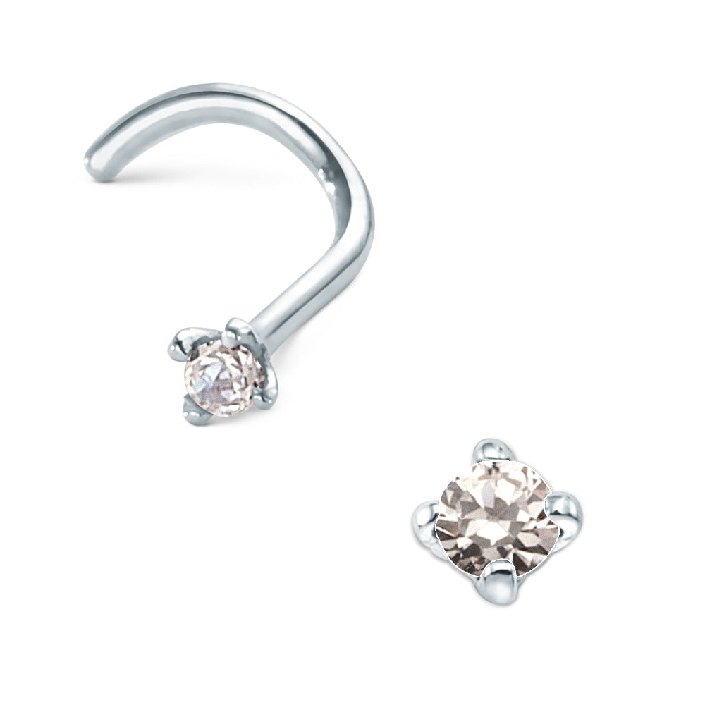 Nasenstecker Edelstahl Kristall rund, 2 mm Ø0.8 mm
