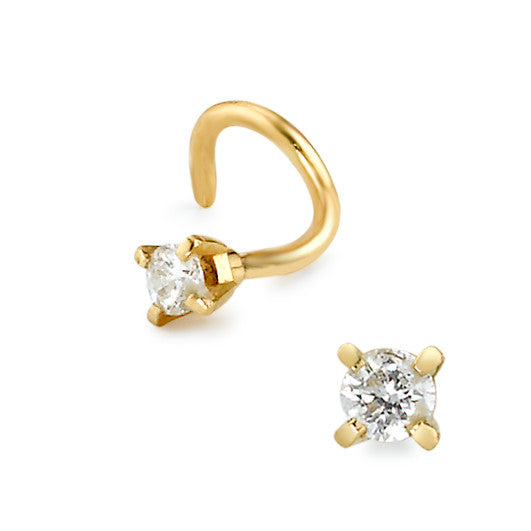 Eleganter Nasenstecker aus hochwertigem 750er Gelbgold, verziert mit funkelndem Diamanten. Dieses zeitlose Schmuckstück für Damen überzeugt durch filigranes Design und perfekte Verarbeitung. Ideal für einen dezenten, edlen Look im Alltag oder zu besonderen Anlässen.