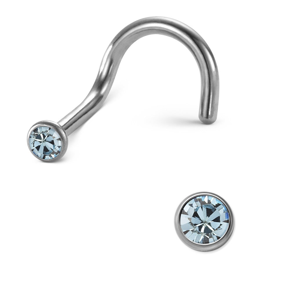 Eleganter Damen Nasenstecker aus hautfreundlichem Titan mit funkelndem Zirkonia-Stein in Hellblau. Perfekte Kombination für dezenten Glanz und hohen Tragekomfort. Ideal für empfindliche Nasen und zeitlose Stylings. Leicht zu tragen und langlebig.