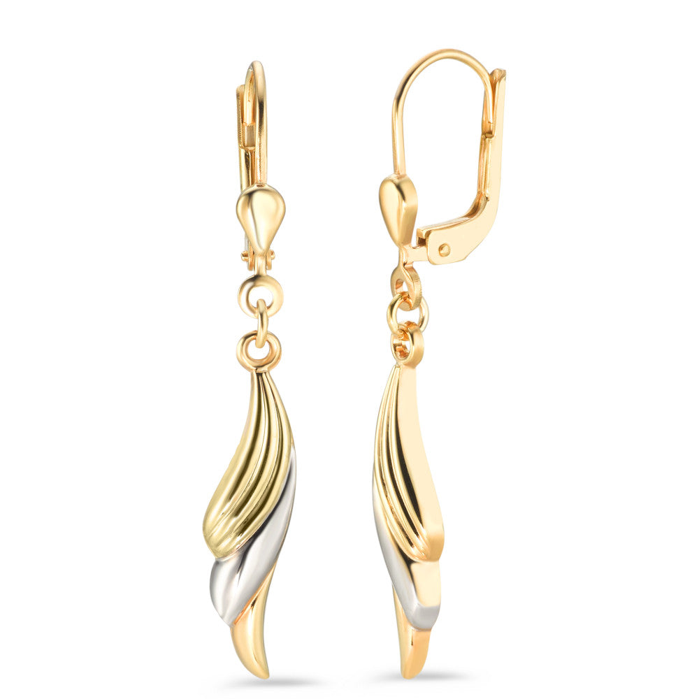 Elegante Damen Ohrhänger aus 375 Gelbgold mit einem zeitlosen Design. Die feinen Details und die Kombination aus poliertem Gelb- und Weißgold verleihen diesen Ohrhängern eine edle Note. Perfekt für jeden Anlass und ein stilvolles Accessoire für jeden Tag.