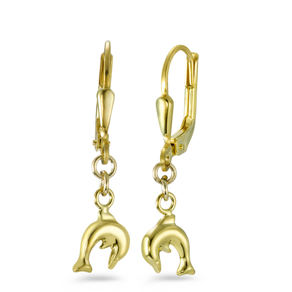 Diese niedlichen Ohrhänger aus 375er Gelbgold sind perfekt für Mädchen. Der zarte Delfin-Anhänger sorgt für verspielten Charme und ist ein schönes Accessoire für jeden Anlass. Hochwertig verarbeitet, leicht und angenehm zu tragen – ideal als Geschenk oder zum Selbertragen.