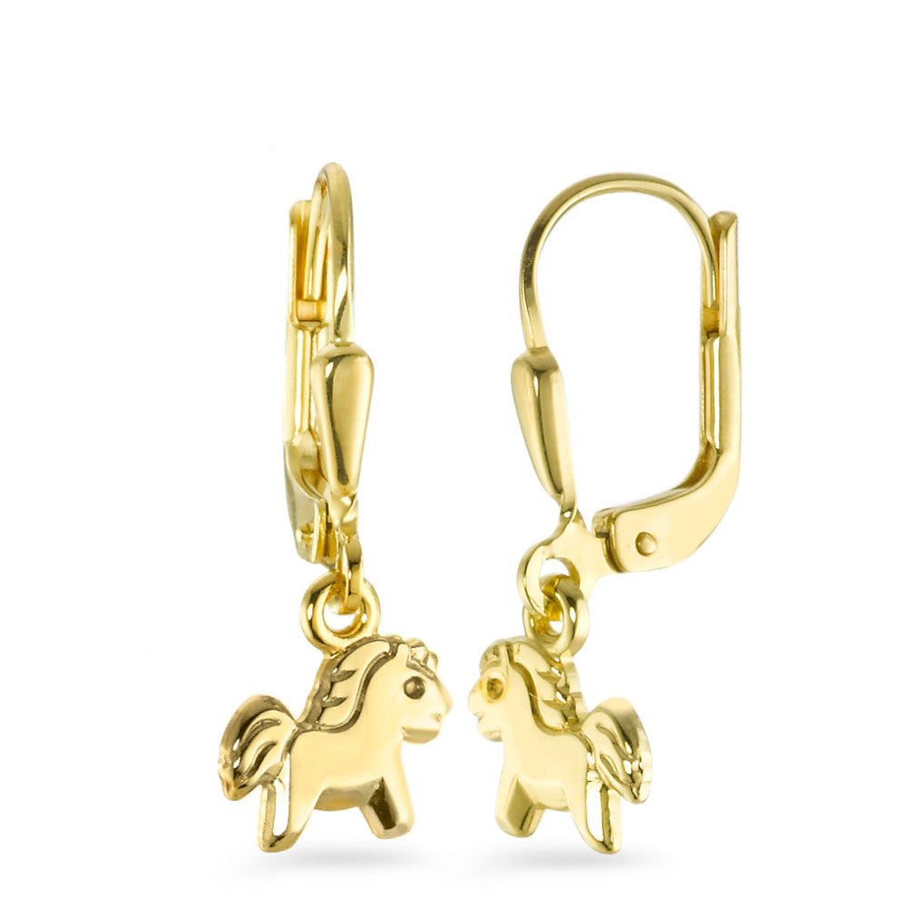Zauberhafte Mädchen Ohrhänger aus hochwertigem 750 Gelbgold. Die funkelnden Pferde-Anhänger sind liebevoll gearbeitet und perfekt für kleine Prinzessinnen. Ein eleganter, sicherer Verschluss sorgt für komfortables Tragen und macht diese Ohrringe zum perfekten Geschenk.