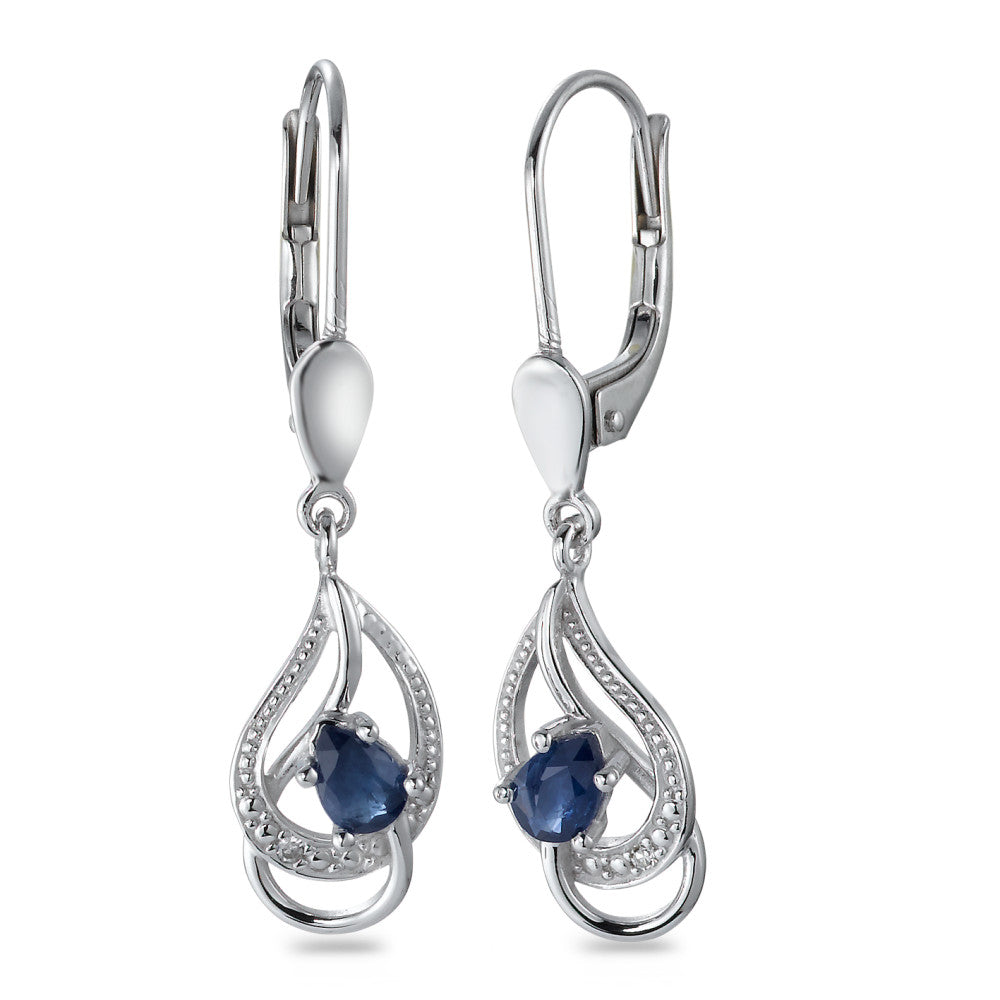Elegante Damen Ohrhänger aus hochwertigem 750er Weißgold. Feine Tropfenform mit exquisiter Struktur, verziert mit funkelnden Diamanten und tiefblauen Saphiren. Zeitloses Design, das jedem Look eine edle Note verleiht. Perfekt für besondere Anlässe und den Alltag.