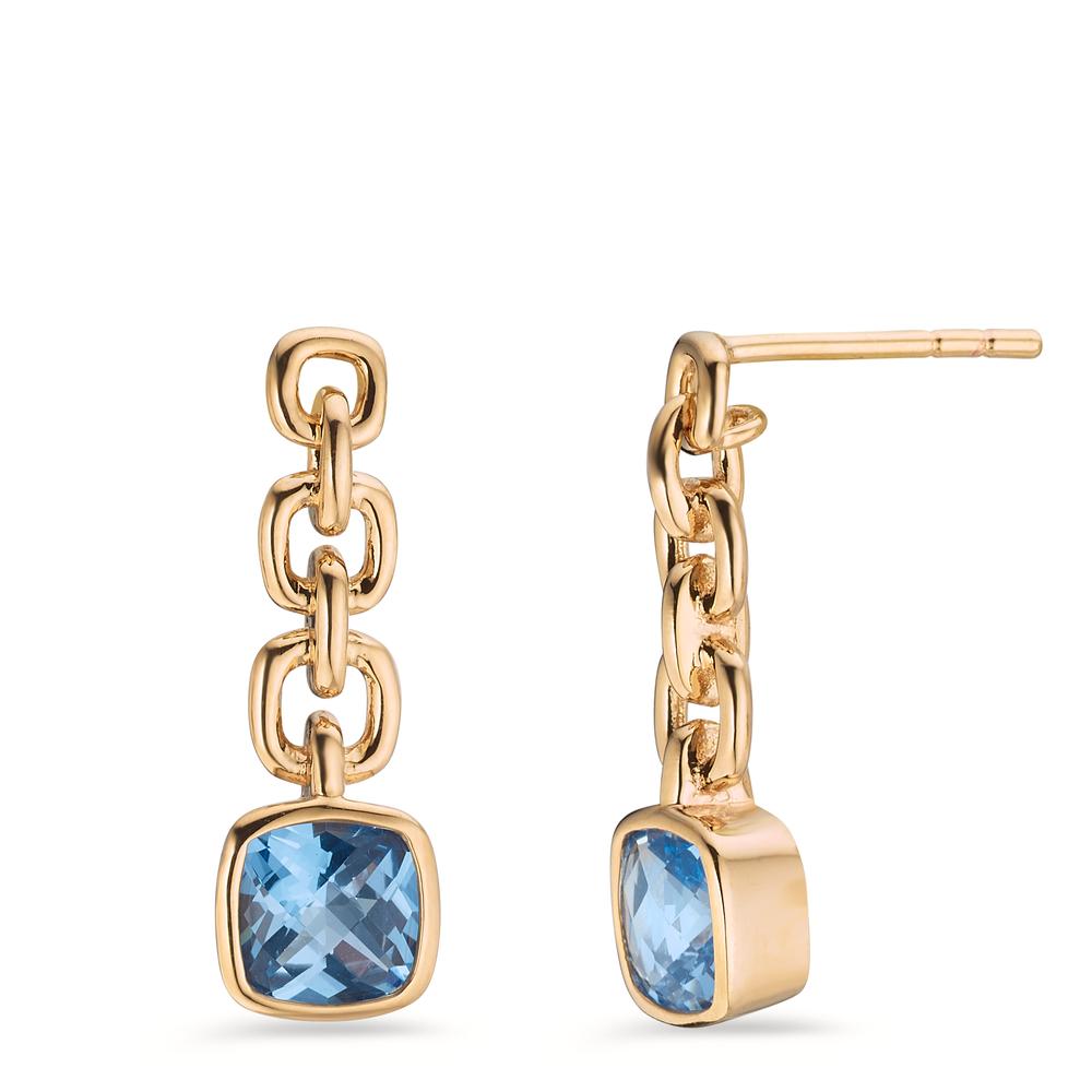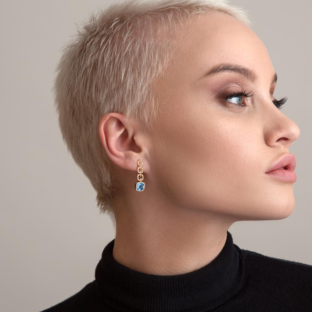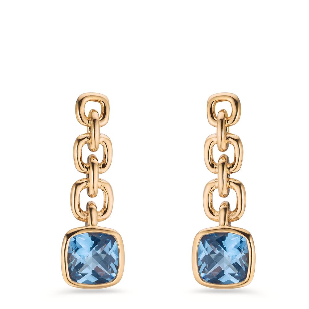 Elegante Damen Ohrhänger aus glänzendem Bronze mit einer Kette aus vier Gliedern. Veredelt mit funkelnden, blauen Zirkonia-Steinen bieten diese Ohrringe einen stilvollen Look für jeden Anlass. Zeitloses Design und hochwertiges Material machen sie zum perfekten Accessoire.