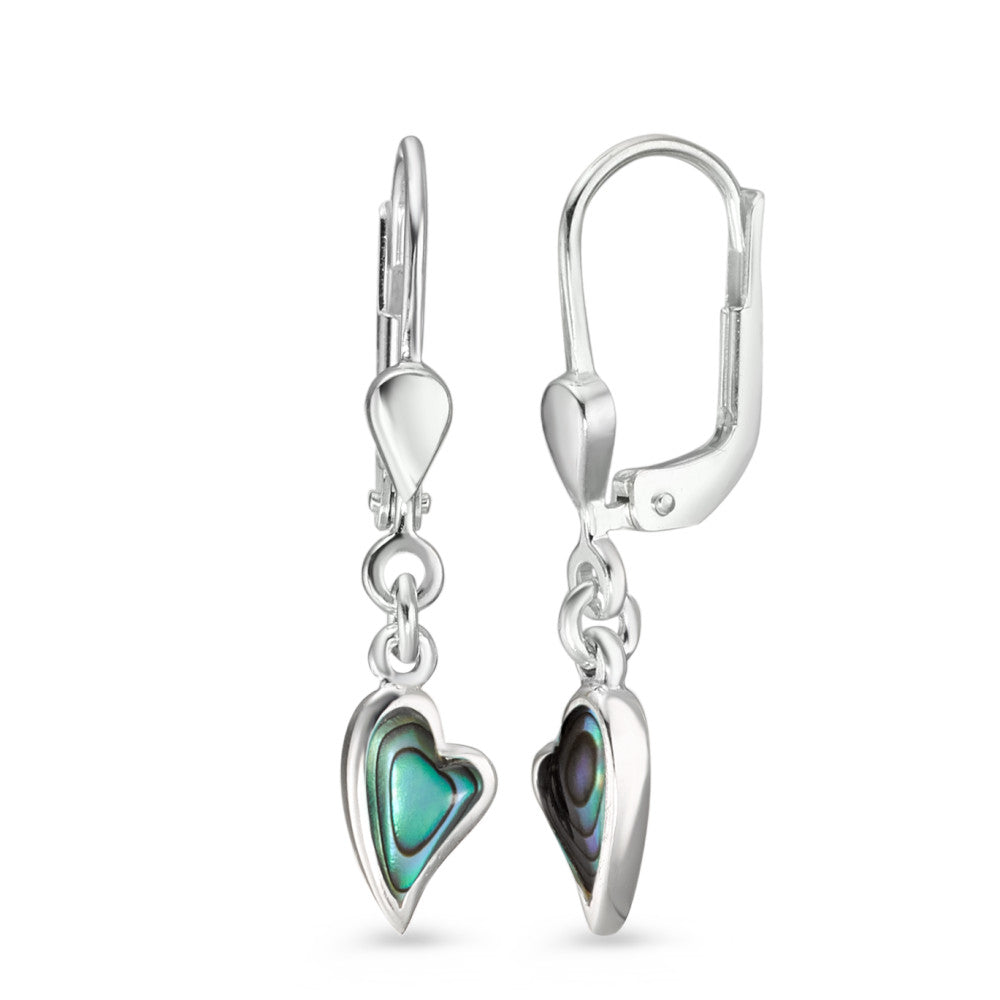 Ohrhänger Silber Abalone 2 Steine Herz Ø5 mm