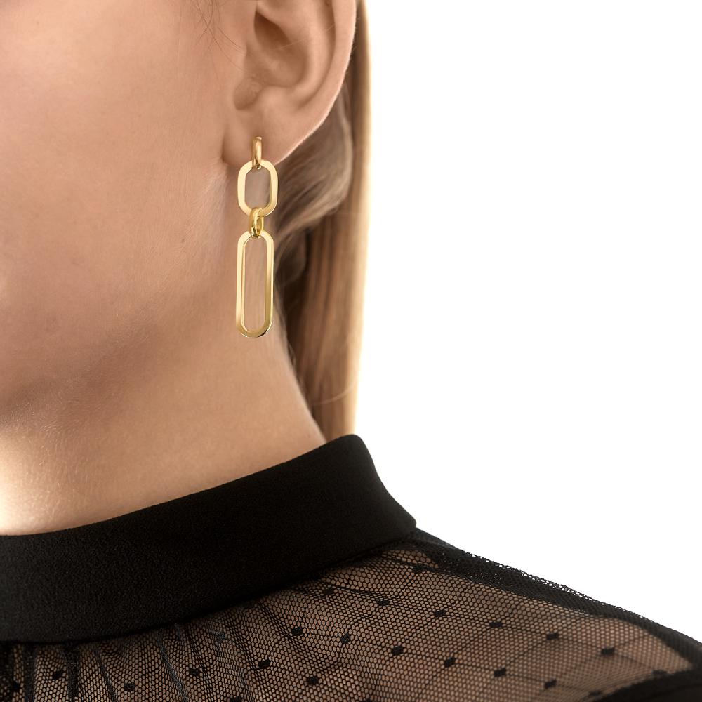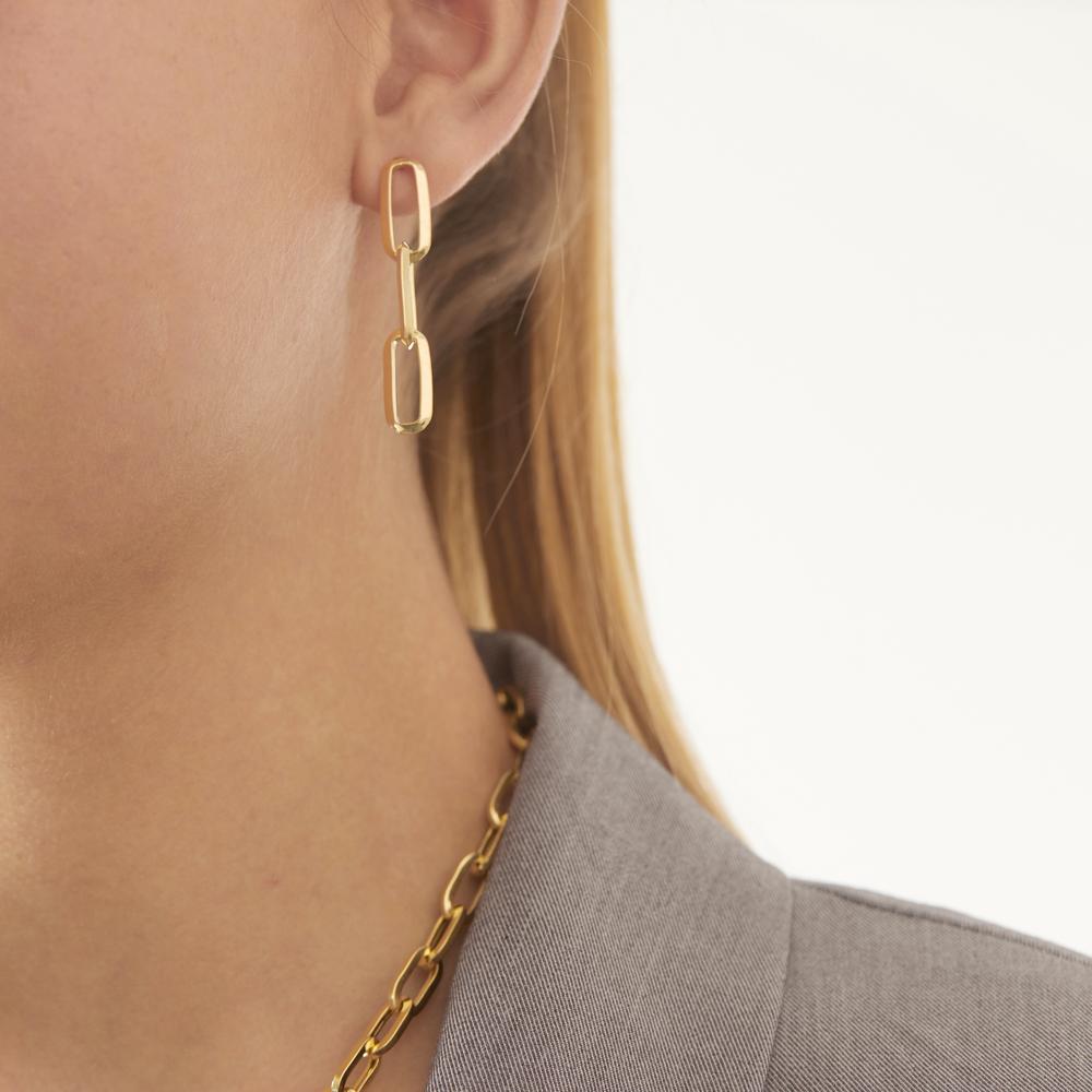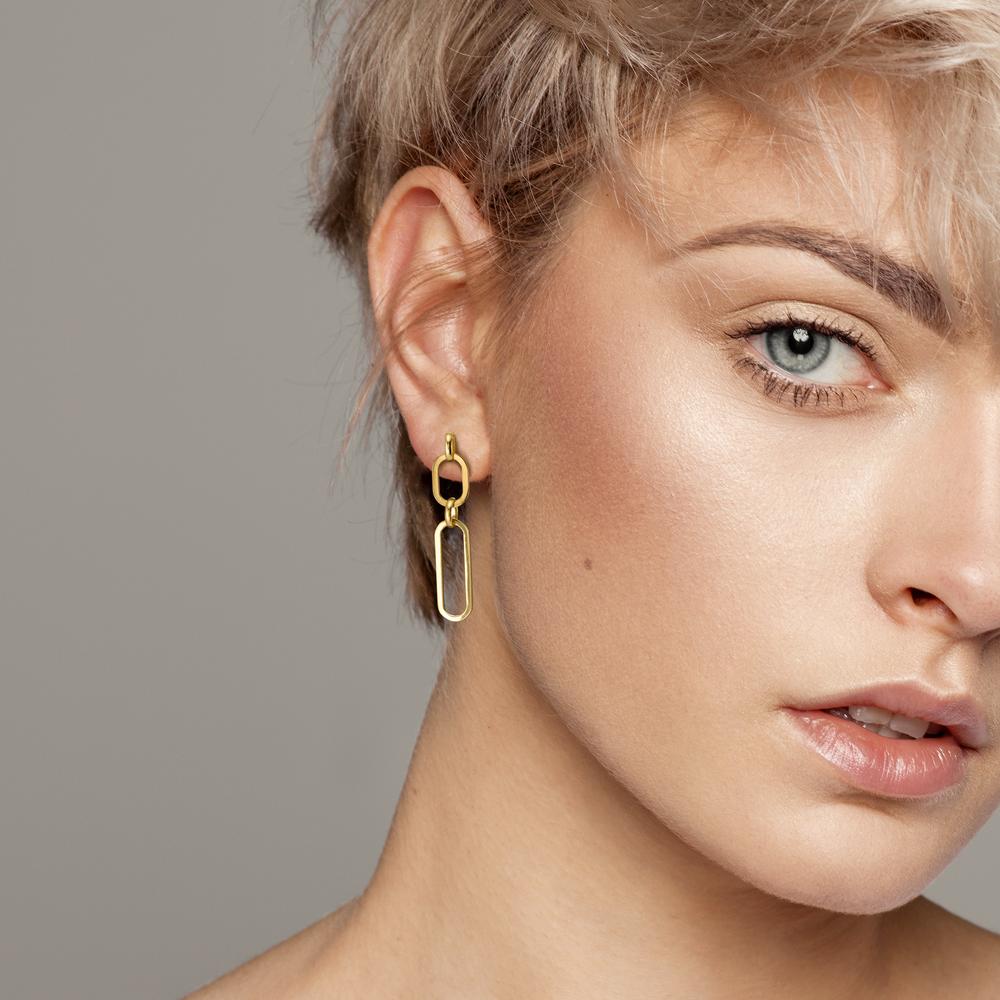 Elegante Damen Ohrhänger aus hochwertigem Silber mit goldfarbener Beschichtung. Die zwei stilvollen, miteinander verbundenen Glieder verleihen jedem Outfit einen modernen und zugleich zeitlosen Look. Leicht und angenehm zu tragen – perfektes Accessoire für jeden Anlass.