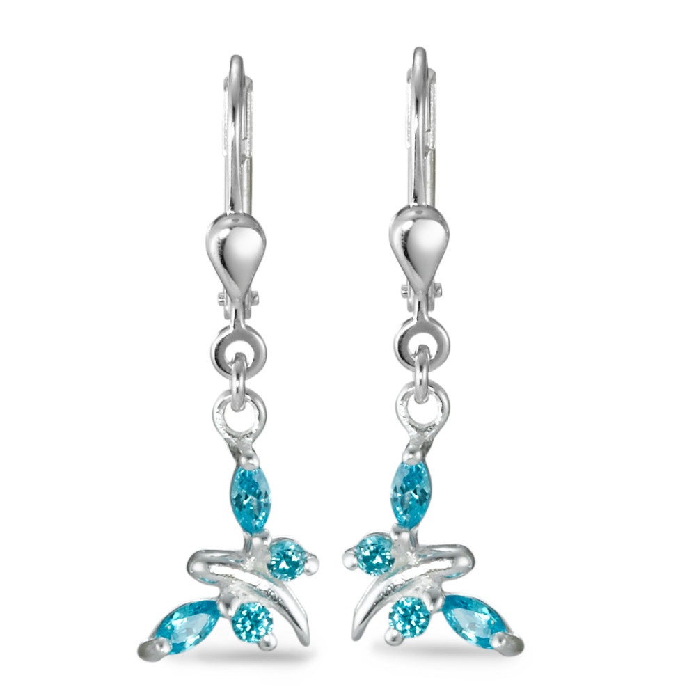 Ohrhänger Silber Zirkonia blau, 8 Steine