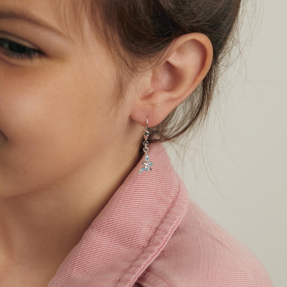 Zauberhafte Mädchen-Ohrhänger aus echtem Silber mit funkelnden, blauen Zirkonia-Steinen. Die filigrane Form sorgt für einen verspielten Look und perfekten Tragekomfort. Ideal als Geschenk oder für den besonderen Anlass – zeitlos schön und kindgerecht gestaltet.