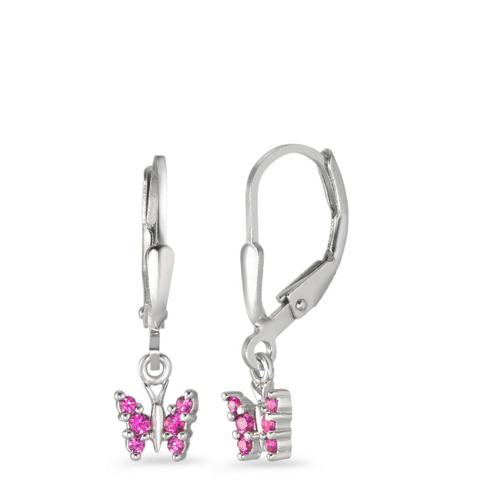 Ohrhänger Silber Zirkonia pink, 6 Steine rhodiniert Schmetterling