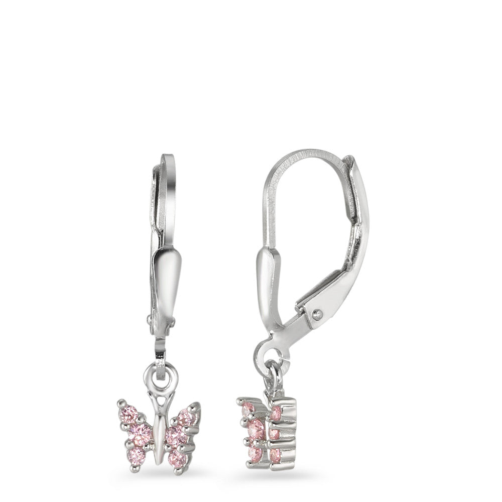 Ohrhänger Silber Zirkonia rosa, 6 Steine rhodiniert Schmetterling