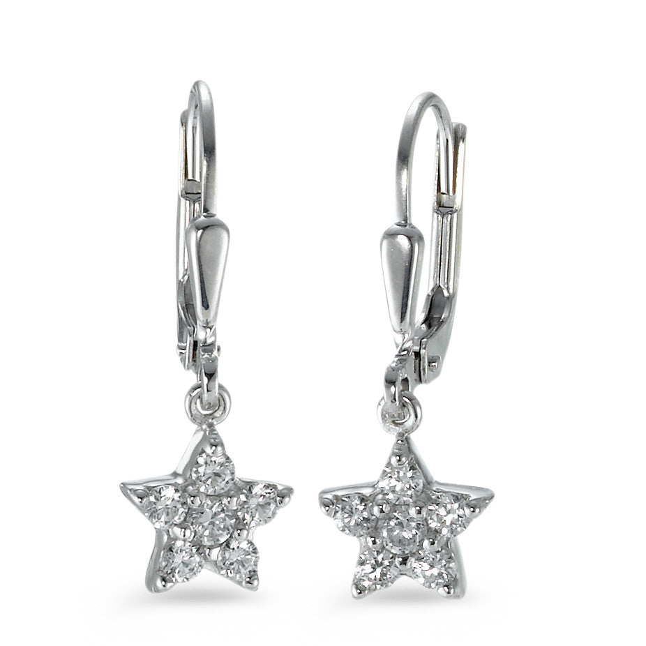 Ohrhänger Silber Zirkonia weiss, 12 Steine rhodiniert Stern