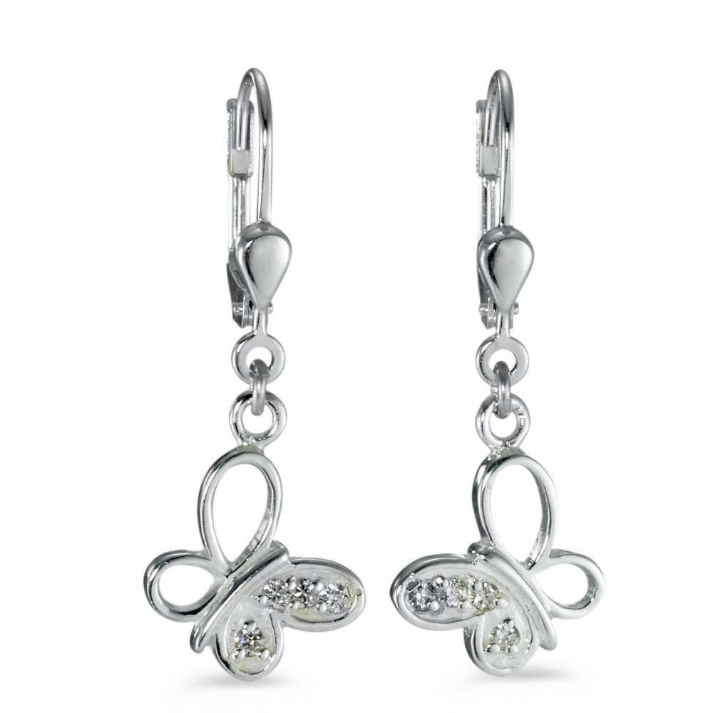 Ohrhänger Silber Zirkonia weiss, 8 Steine versilbert Schmetterling