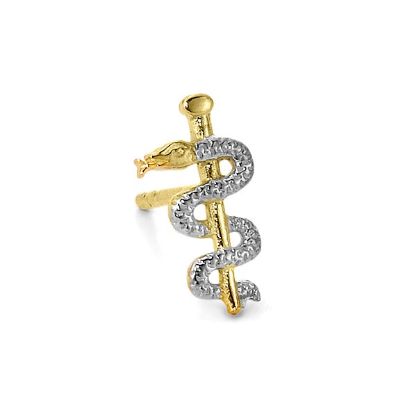 Eleganter Herren Ohrstecker aus 750er Gelbgold mit Äskulap-Symbol. Das markante Design vereint Tradition und Stil, perfekt für medizinische Berufe oder als besonderes Accessoire. Ein einzelner, hochwertiger Ohrschmuck für einen edlen Auftritt.