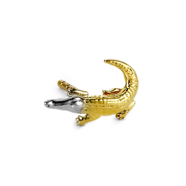 Dieser exklusive Herren-Ohrstecker aus 750er Gelbgold besticht durch seine einzigartige Krokodil-Form. Das detailreiche Design kombiniert edles Gelb- und Weißgold und verleiht Ihrem Look einen markanten, stilvollen Akzent. Perfekt für selbstbewusste Männer mit Geschmack.