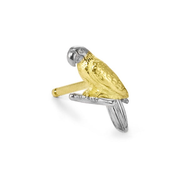Dieser stilvolle Herren-Ohrstecker aus 750er Gelbgold zeigt einen detailreichen Papagei in zweifarbiger Ausführung. Ein außergewöhnliches Accessoire für tierliebe Männer, das dezent Eleganz und Individualität verleiht. Perfect für jeden Anlass.