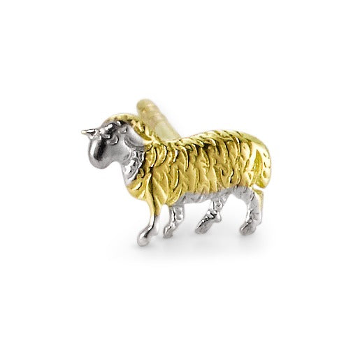 Einzelner Herren-Ohrstecker in detailreicher Schaf-Form aus hochwertigem 750er Gelbgold mit feinen silbernen Akzenten. Stilvolles und einzigartiges Schmuckstück, das Persönlichkeit und Naturverbundenheit auf elegante Weise vereint. Ideal für Tierliebhaber und besondere Akzente.