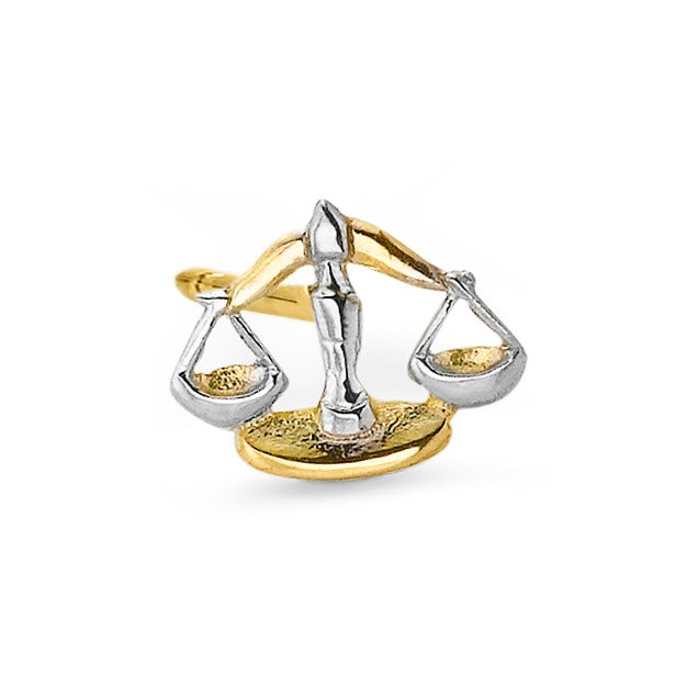Eleganter Herren Ohrstecker aus 750er Gelbgold mit stylisierter Waage als Symbol für das Sternzeichen Waage. Fein verarbeitet und markant im Design, ist dieser einzelne Ohrstecker ein besonderes Accessoire für den modernen Mann mit Sinn für astrologische Zeichen.