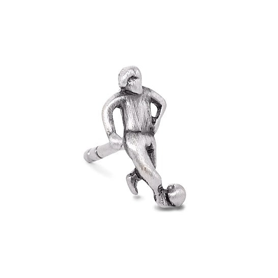 Stylischer Herren Ohrstecker aus hochwertigem Silber, geformt als Fußballspieler mit Ball. Perfekt für alle Fußballfans, die ein dezentes und doch aussagekräftiges Accessoire suchen. Einzeln getragen wirkt er besonders markant und sportlich. Robust und zeitlos – ideal für den täglichen Gebrauch.