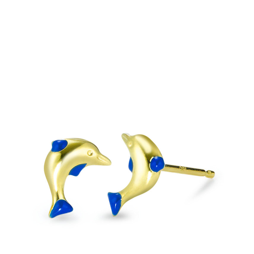 Diese niedlichen Ohrstecker aus 375er Gelbgold sind perfekt für Mädchen, die das Meer lieben. Die zarten Delfin-Motive sind detailreich gestaltet und mit blauem Akzent verziert. Ein hochwertiger, kindgerechter Schmuck, der Freude und Stil vereint.